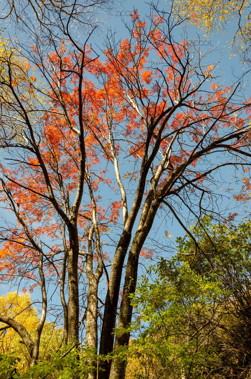 秋天山林里满山的红叶、黄叶