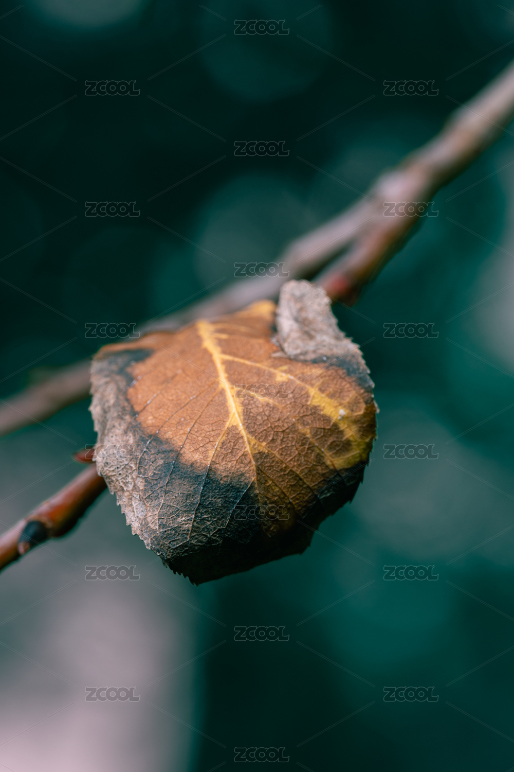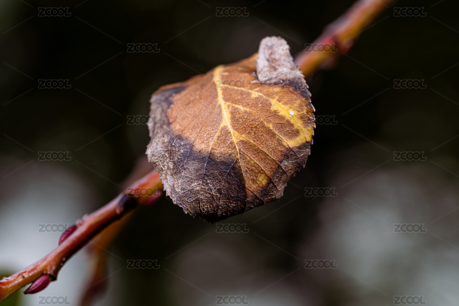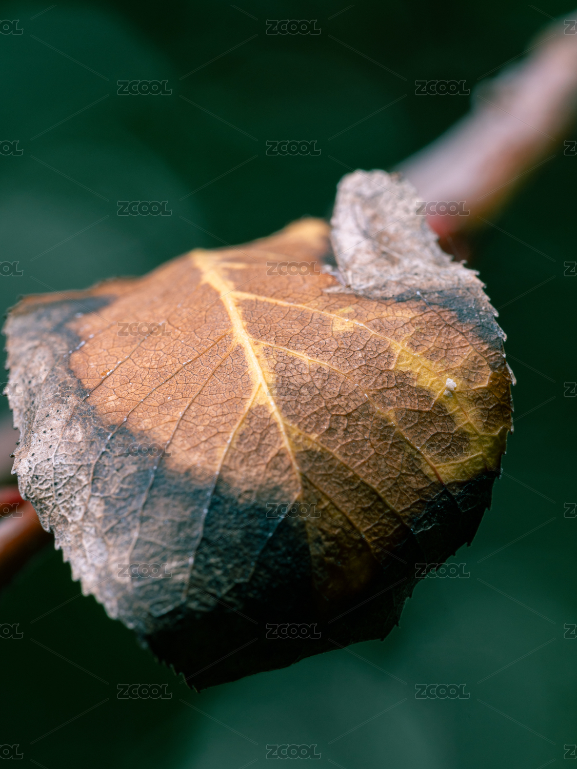 深秋干枯的黄叶微距特写