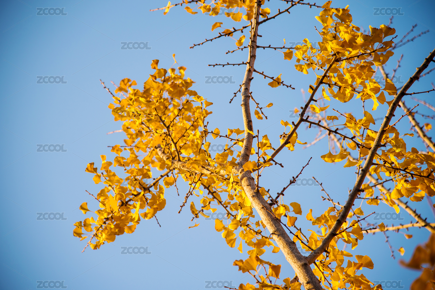 秋日黄叶与蓝天