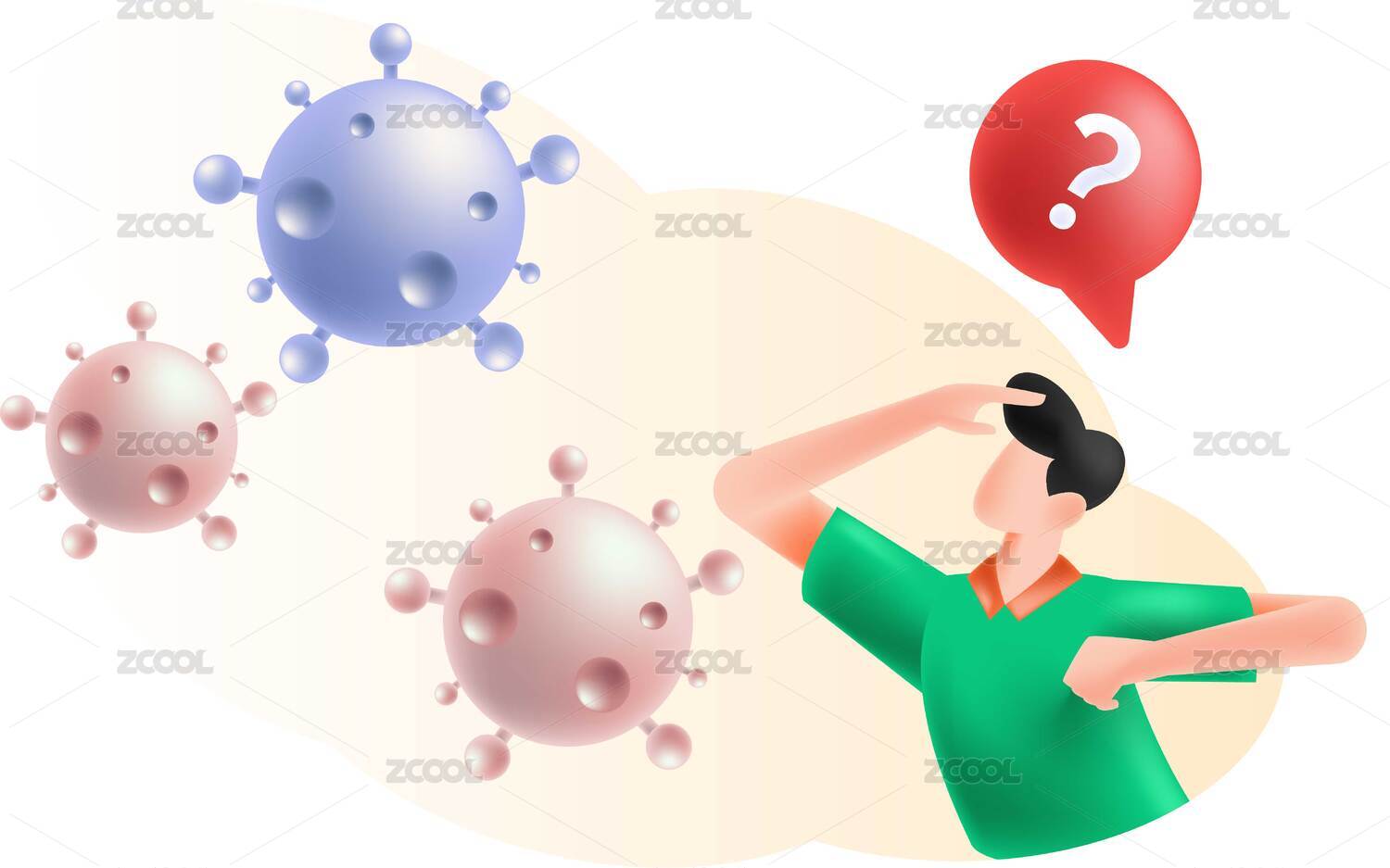 口罩与病毒3D插画