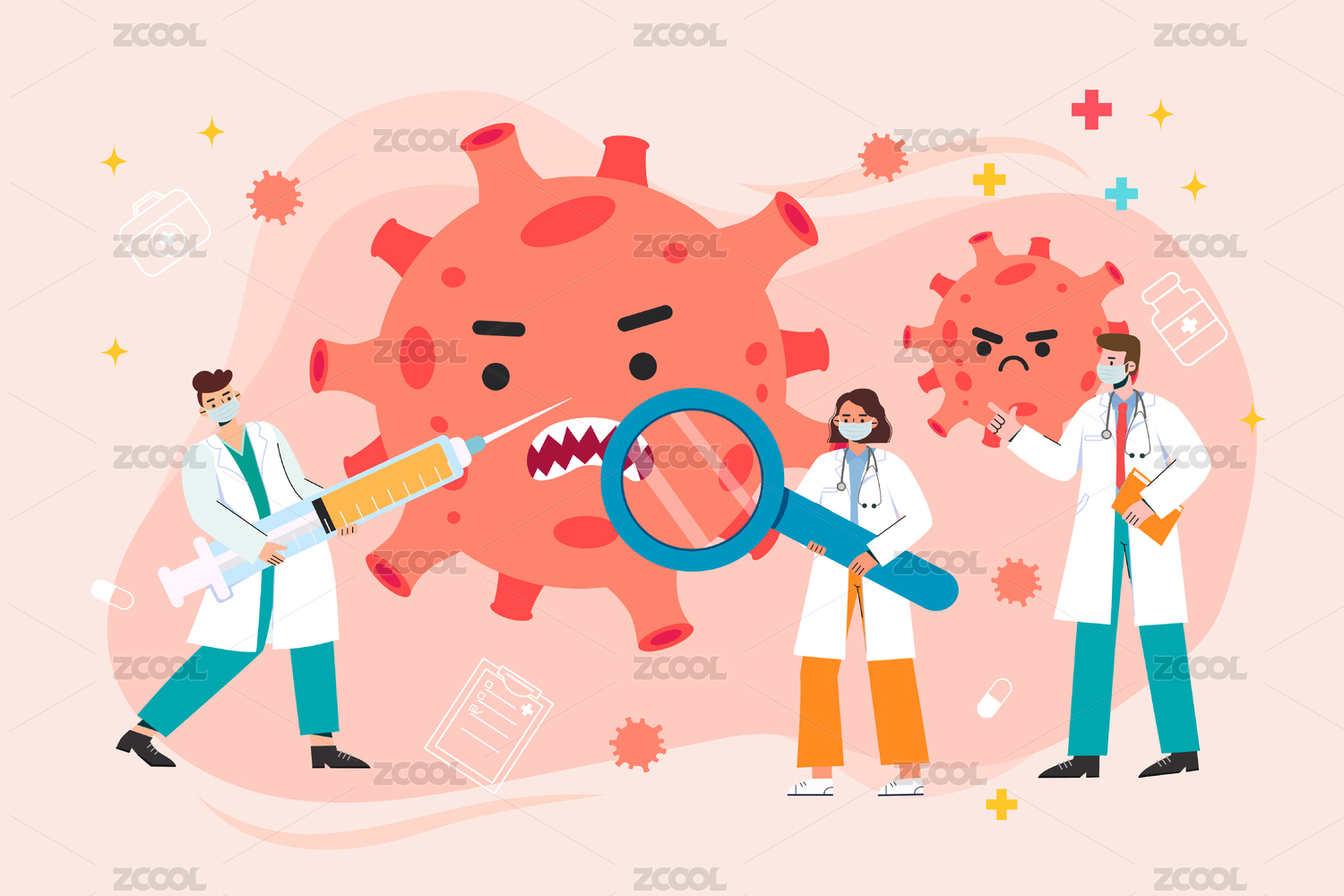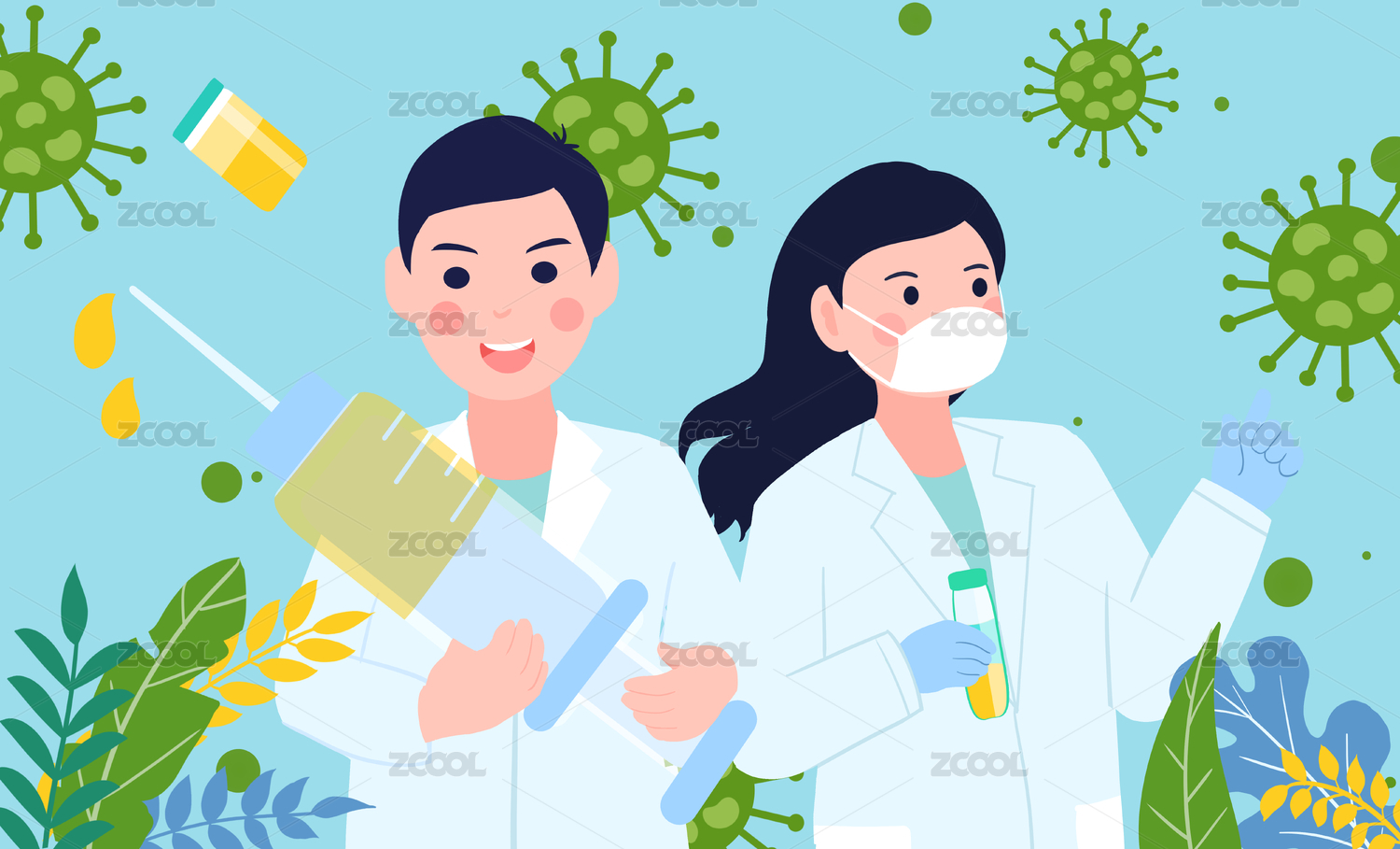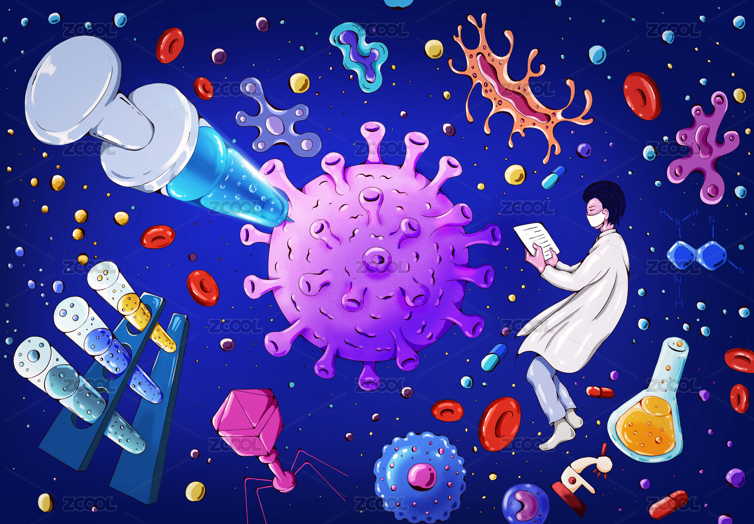 护士医生防疫病毒细菌打疫苗海报宣传插画