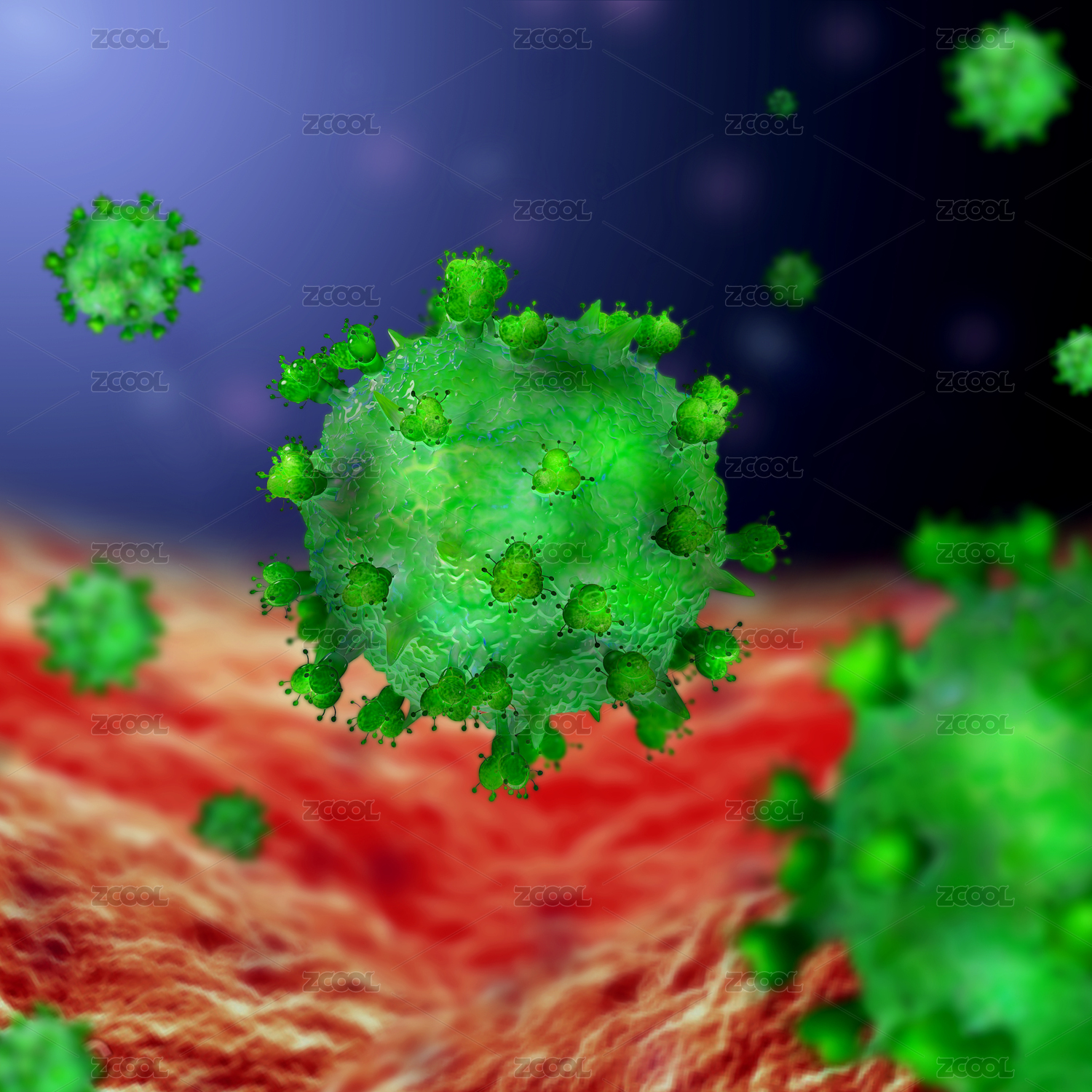 传染性流感病毒感染3D概念场景