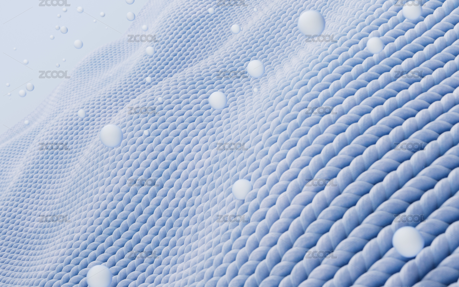 凹形3D微观高分子纤维编织布料与蓝色水珠