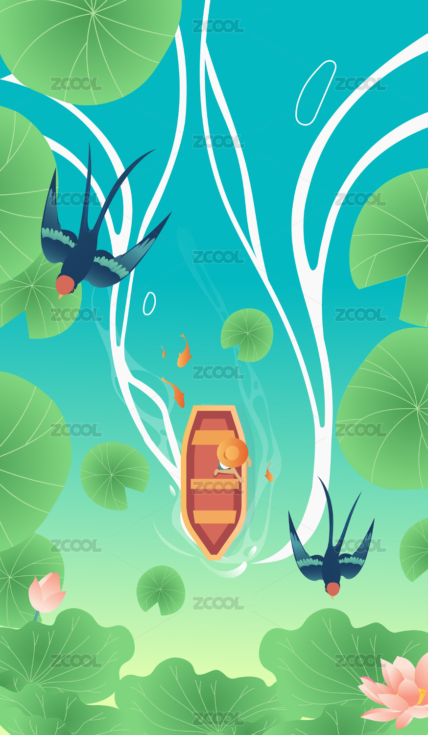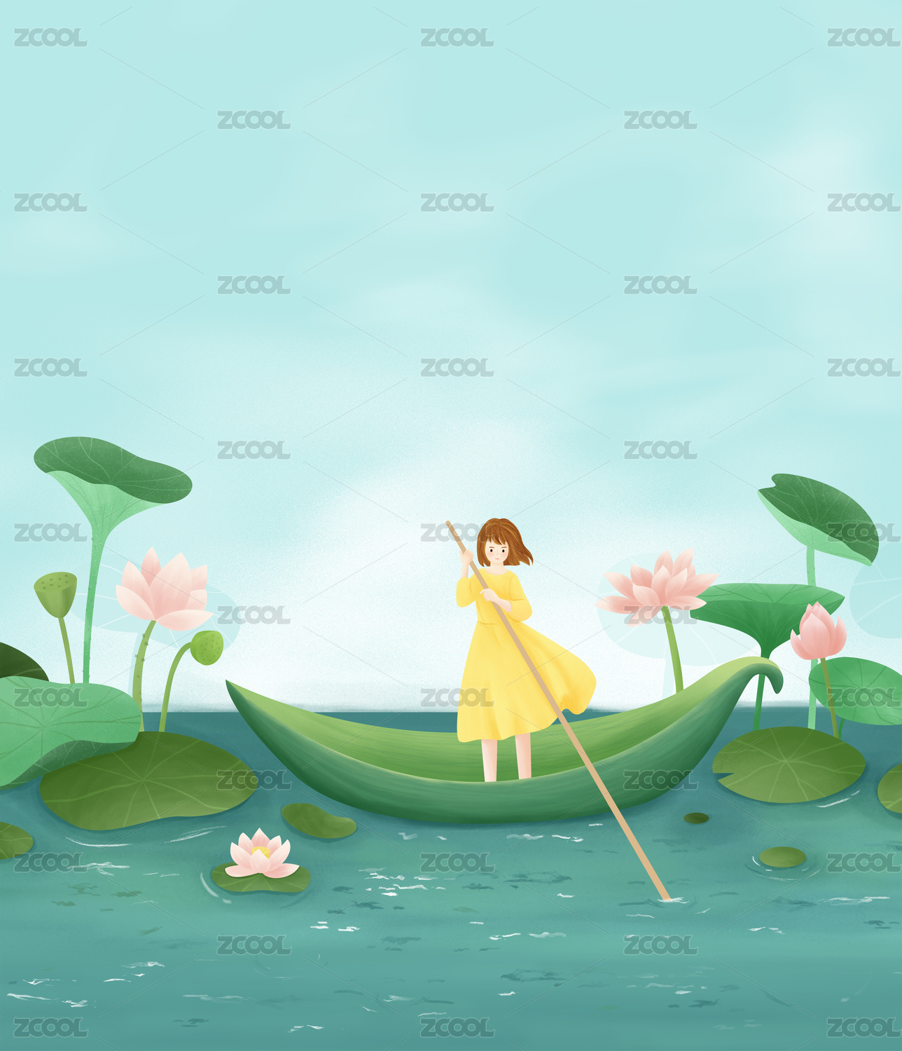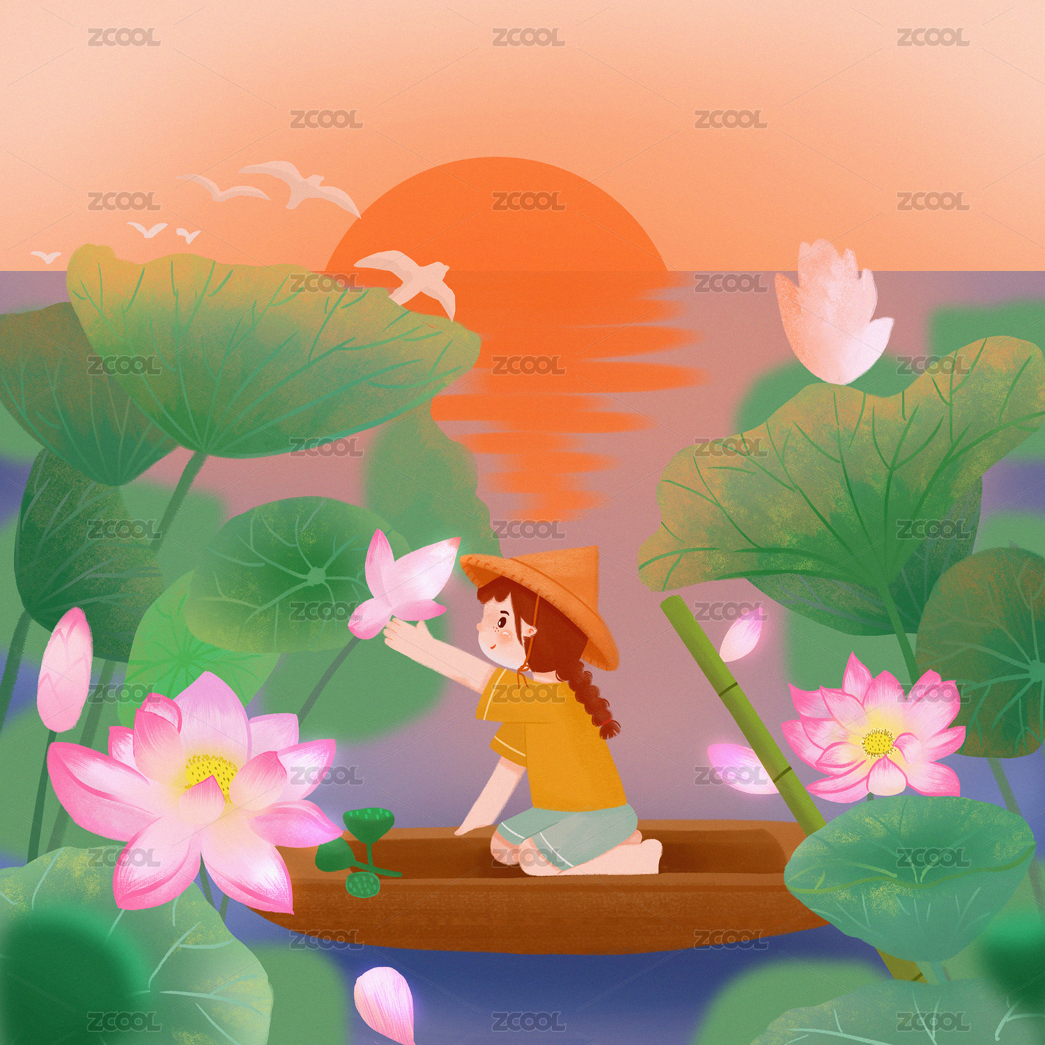 二十四节气之小暑黄昏时分划船采荷花的女孩