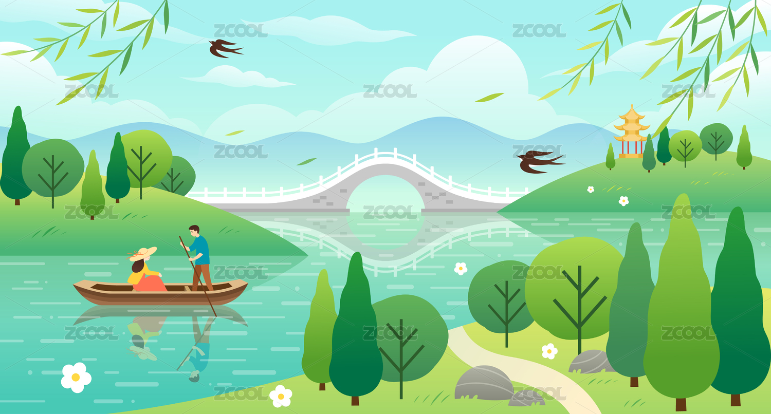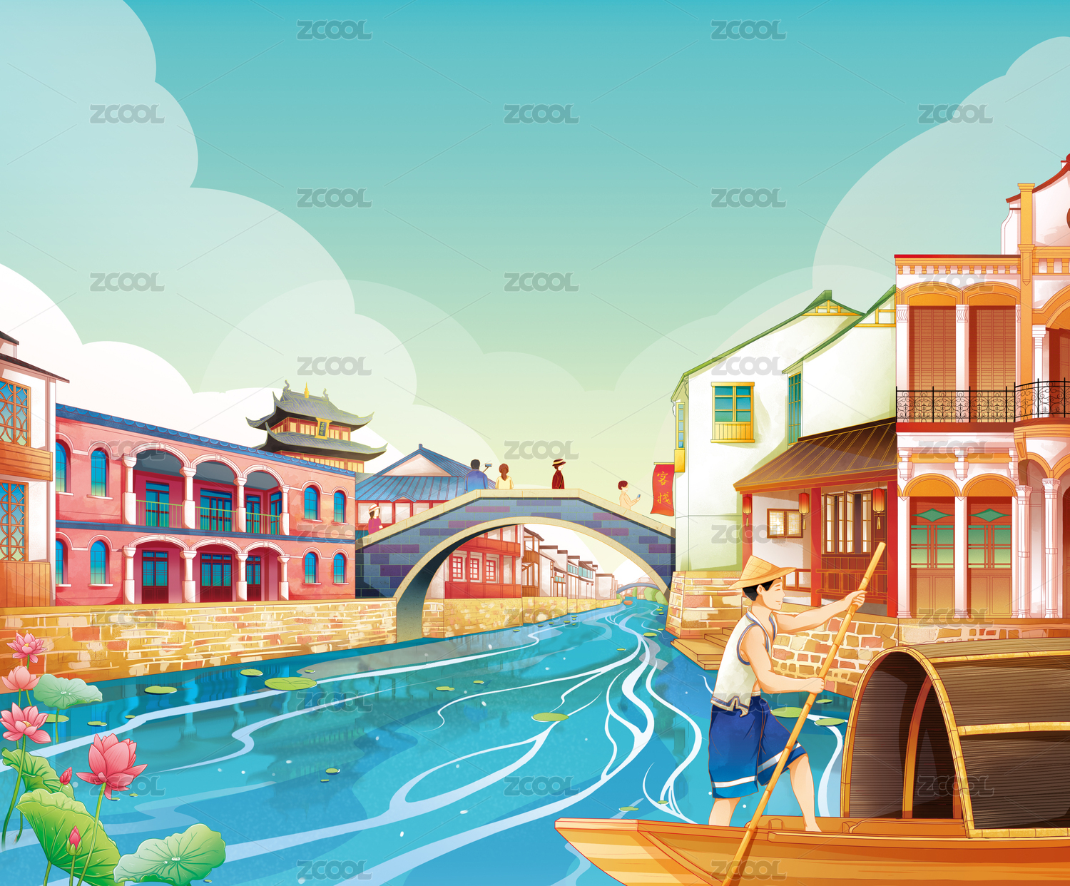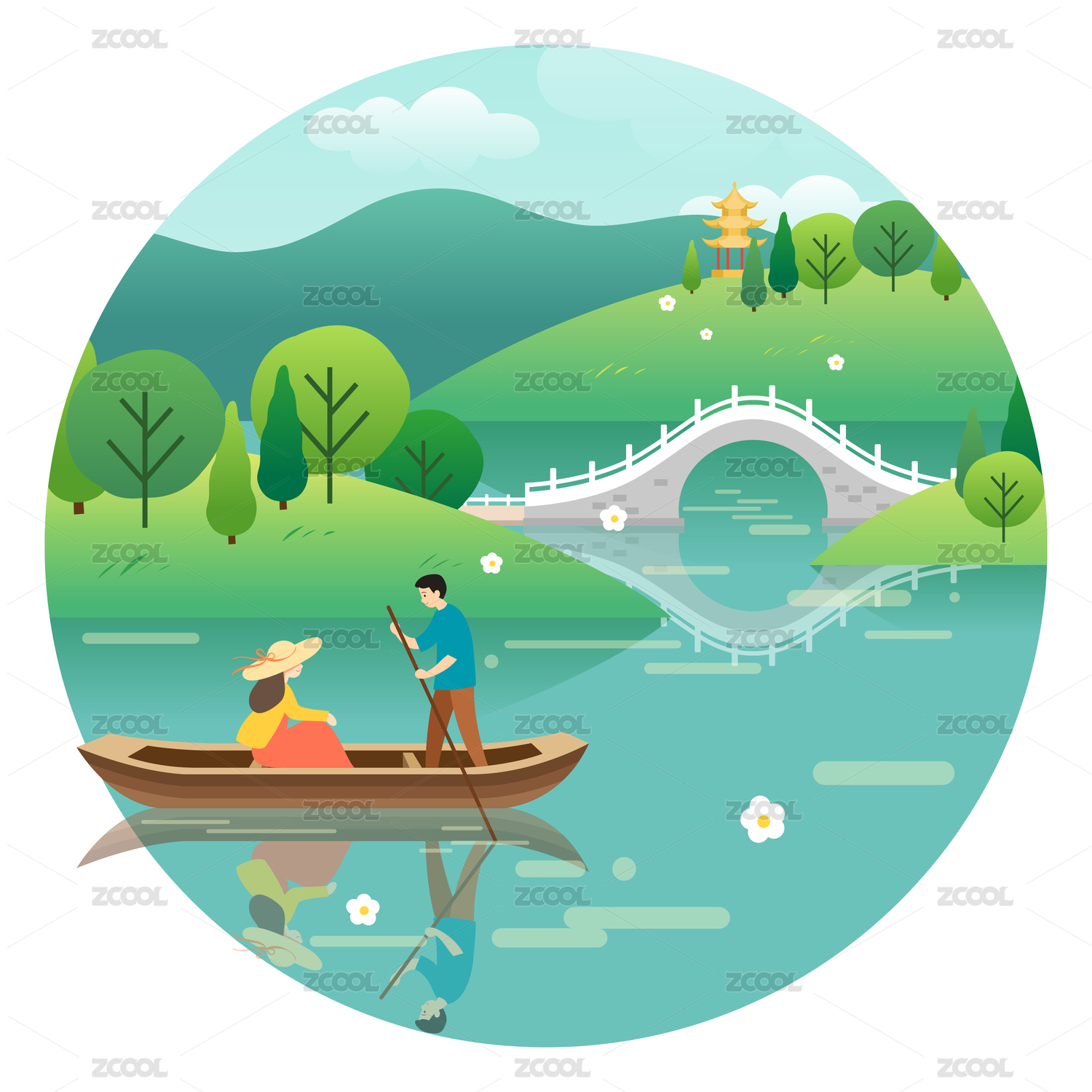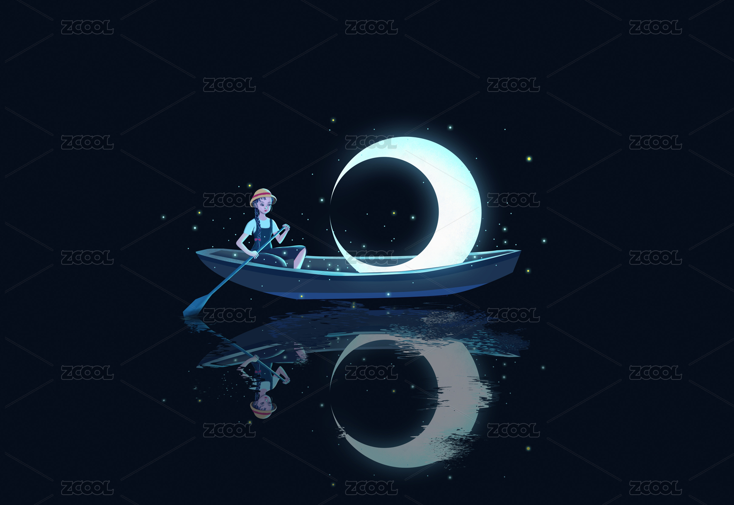 二十四节气之小暑黄昏时分划船采荷花的女孩