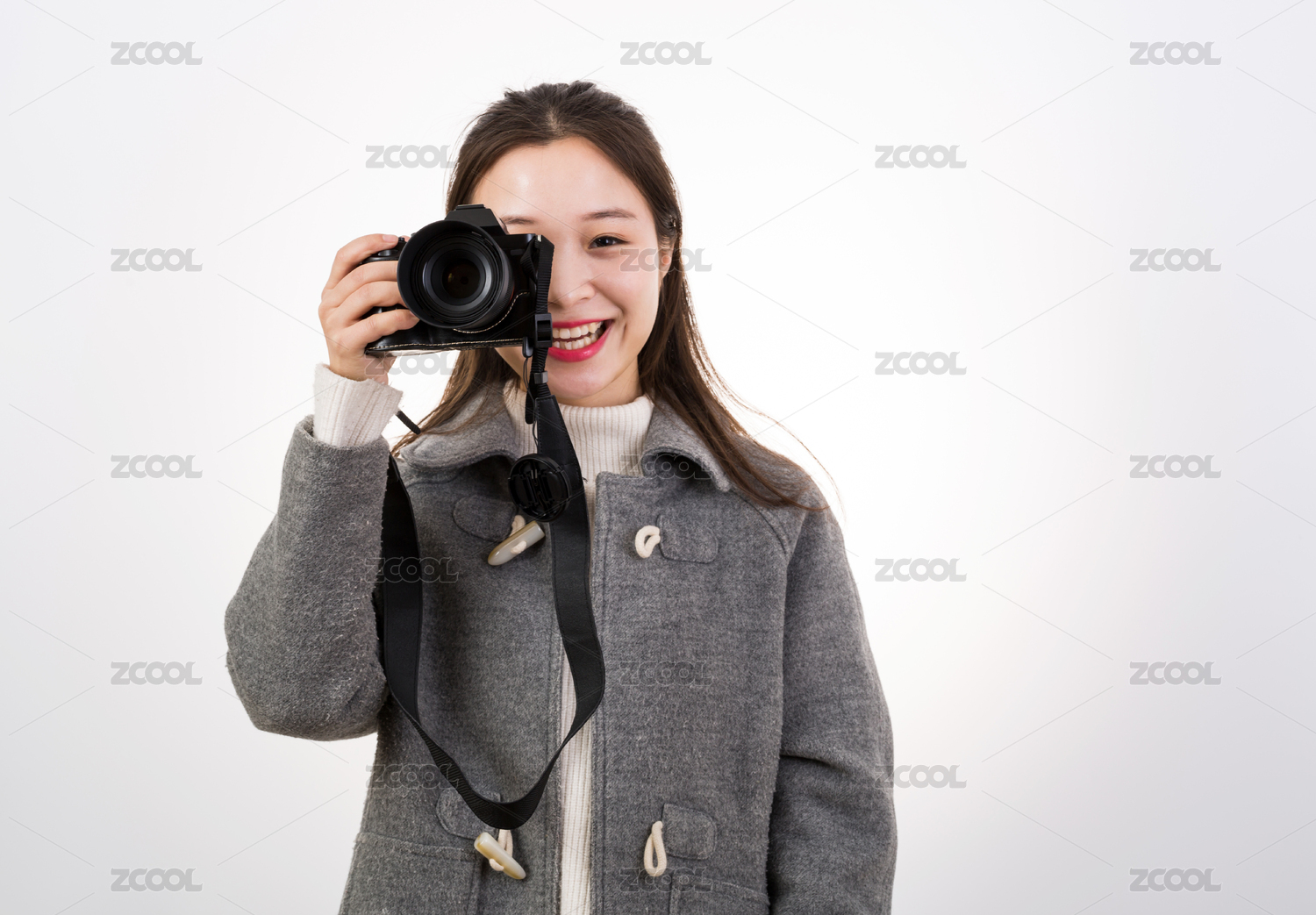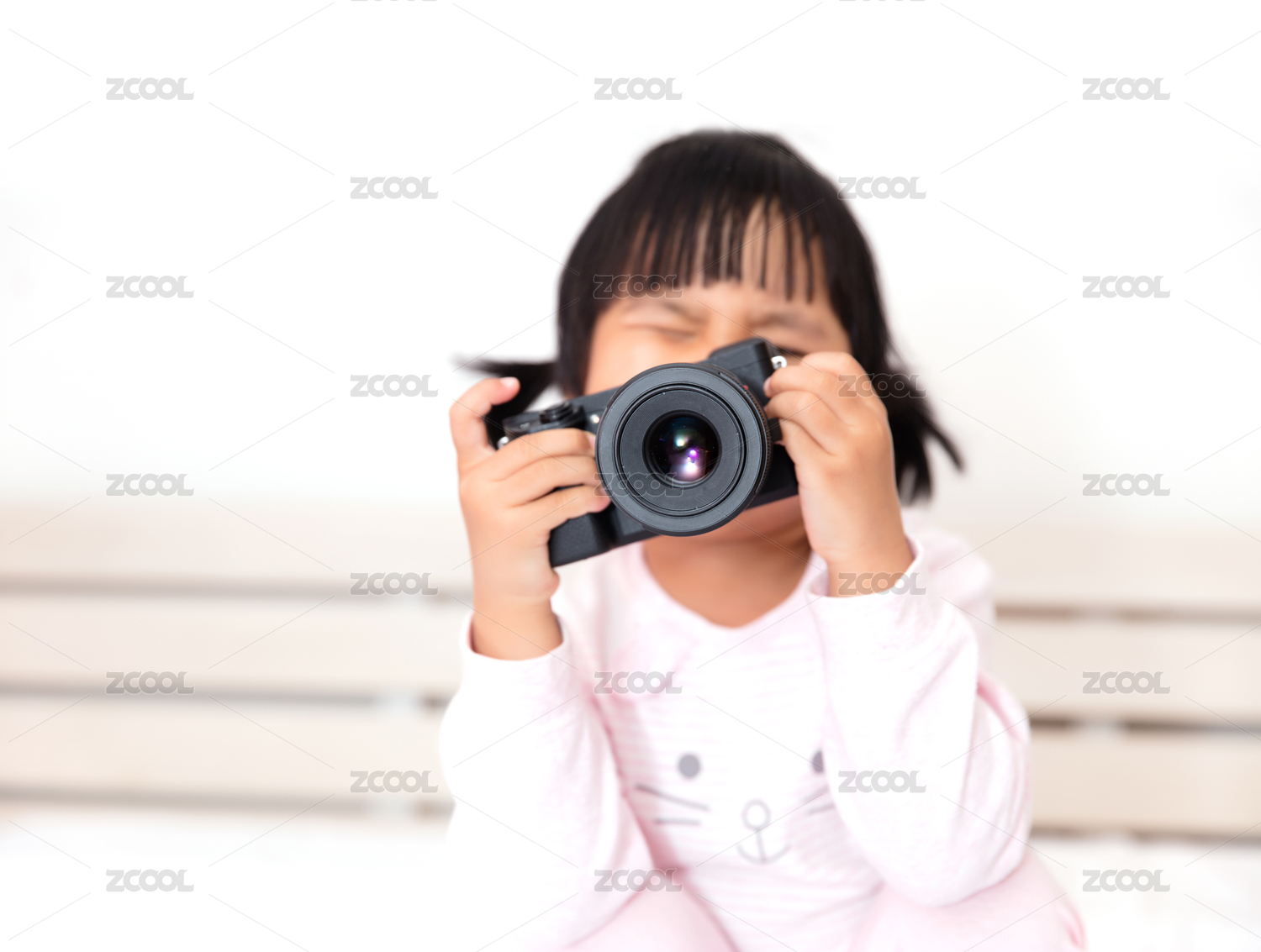 手拿微单拍照的东方小姑娘