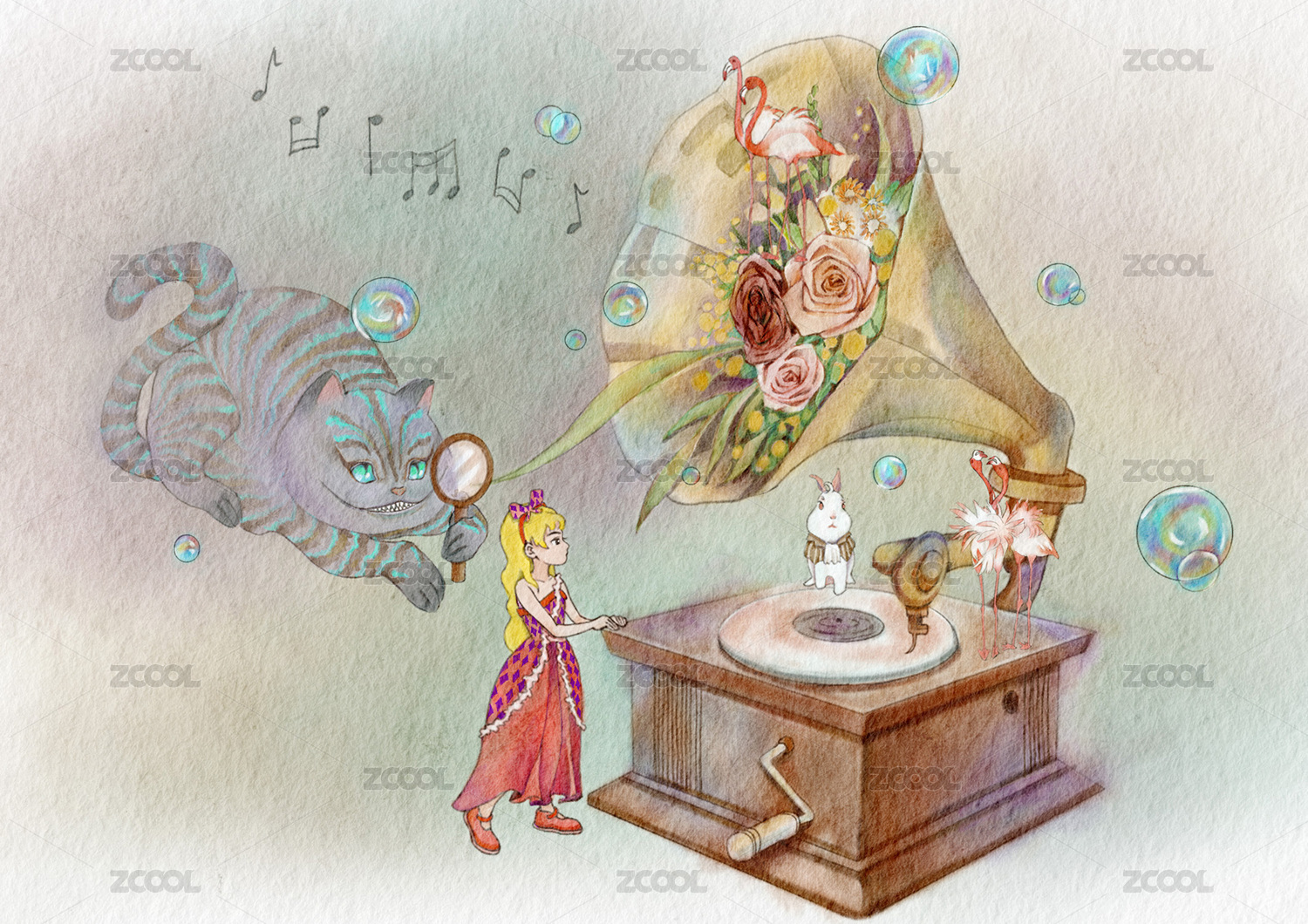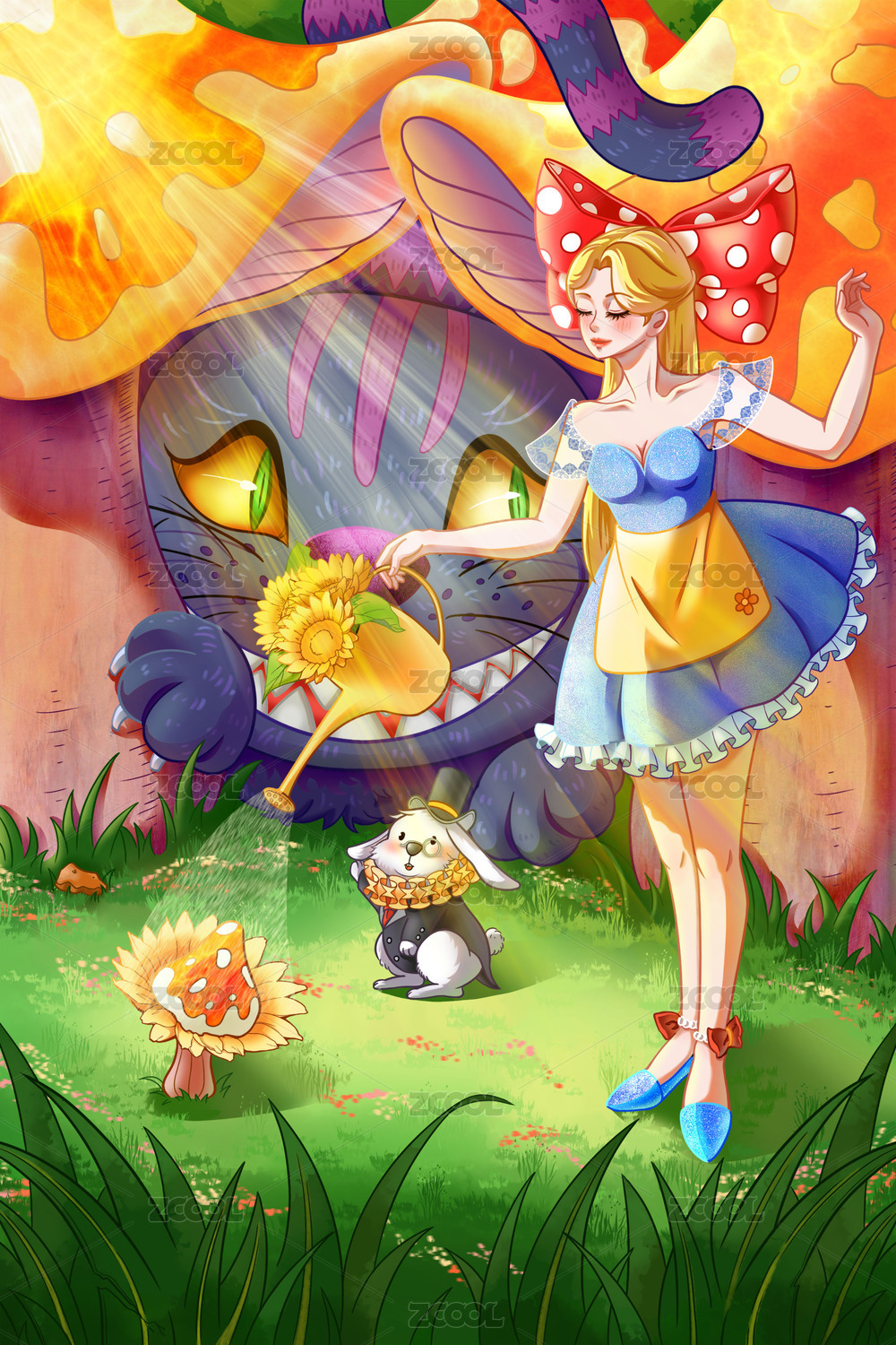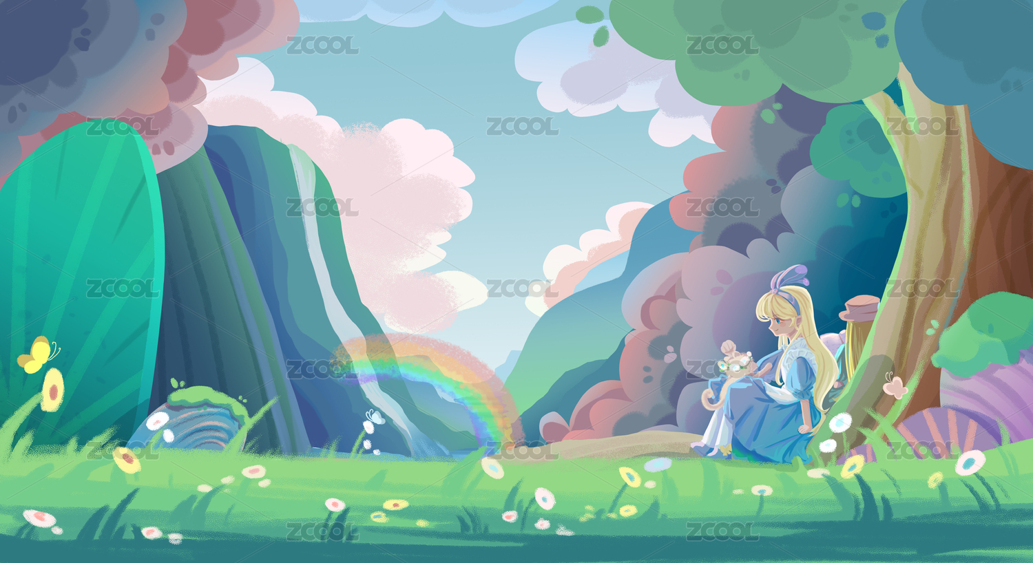 爱丽丝童话女孩插画