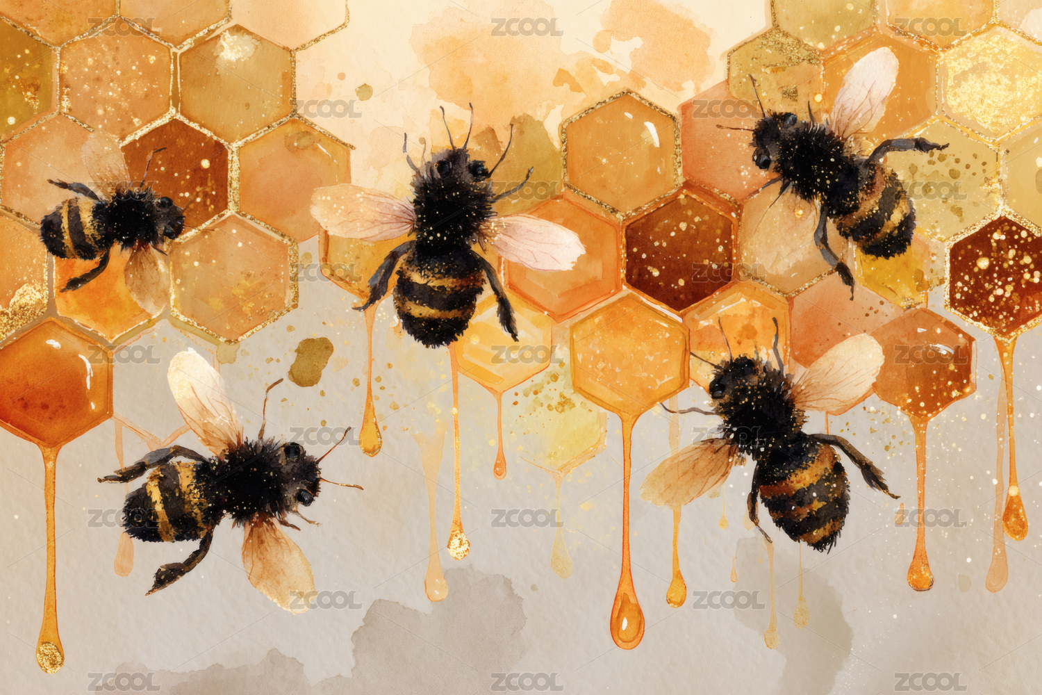 蜜蜂采集蜜蜂房内黄金液蜂蜜制作中