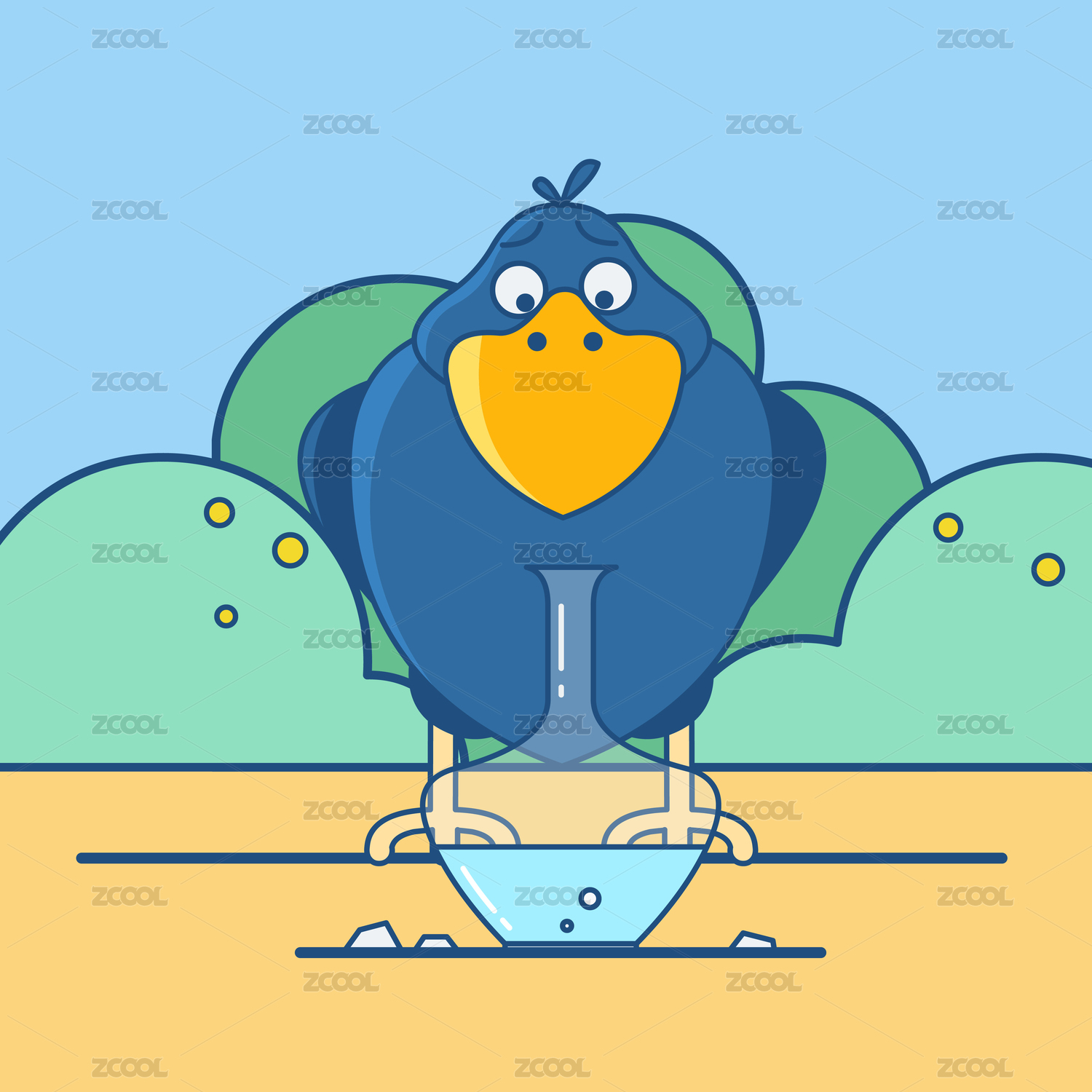 一只小乌鸦面对着半满的水瓶不知该如何下口