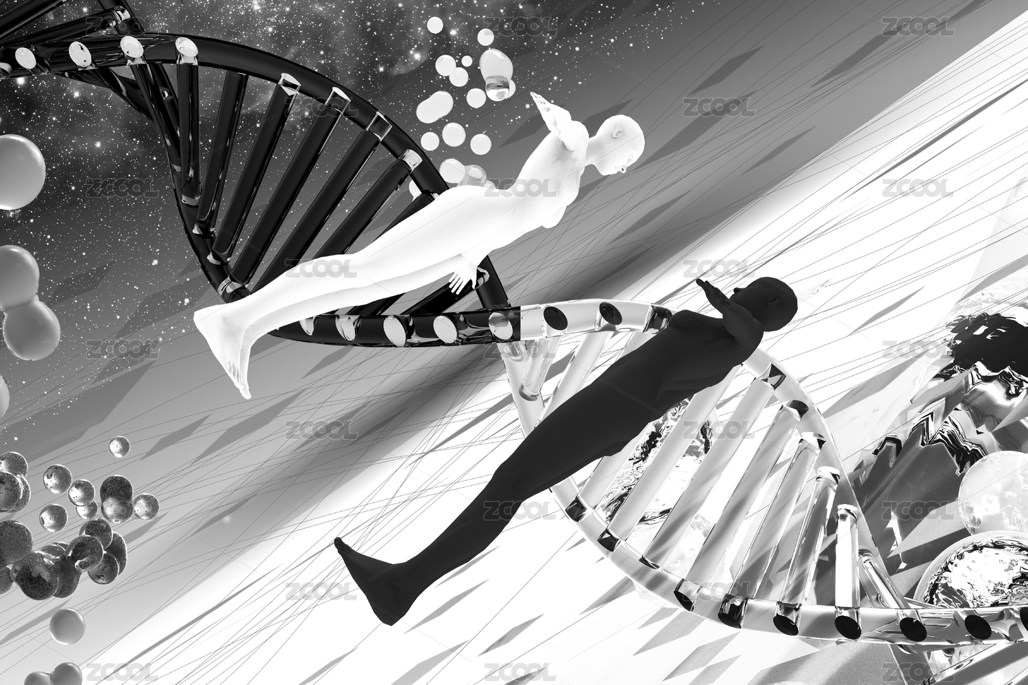 宇宙冥想幻想三维空间原子人体未来科技