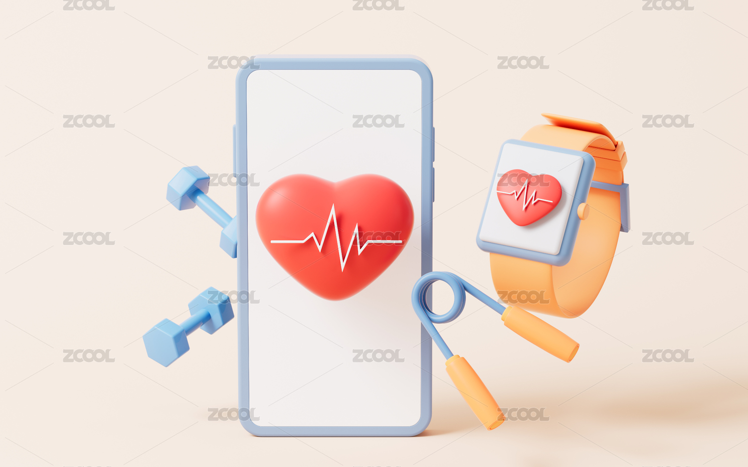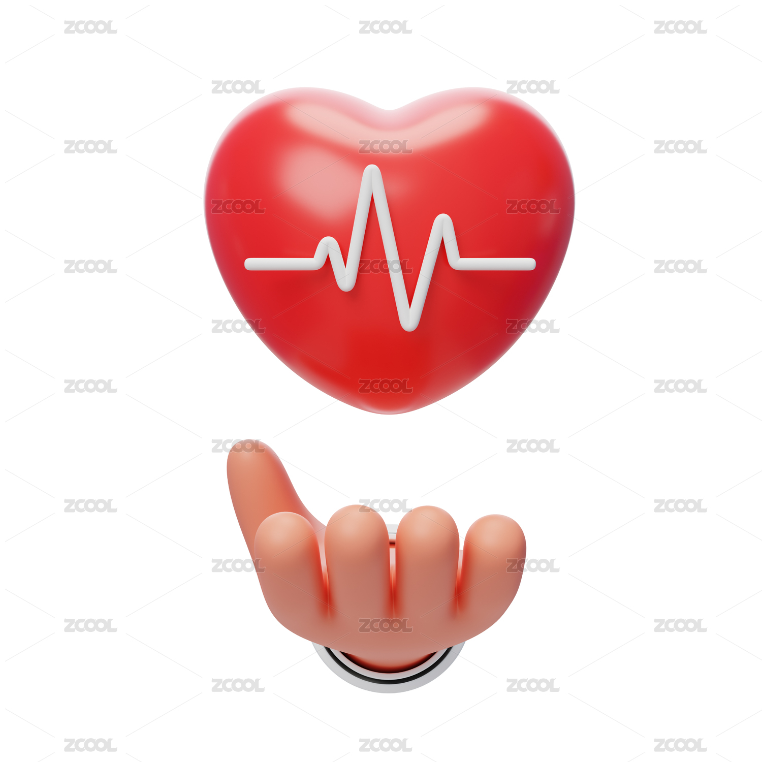 心理学生物医学心脏健康心电图3D