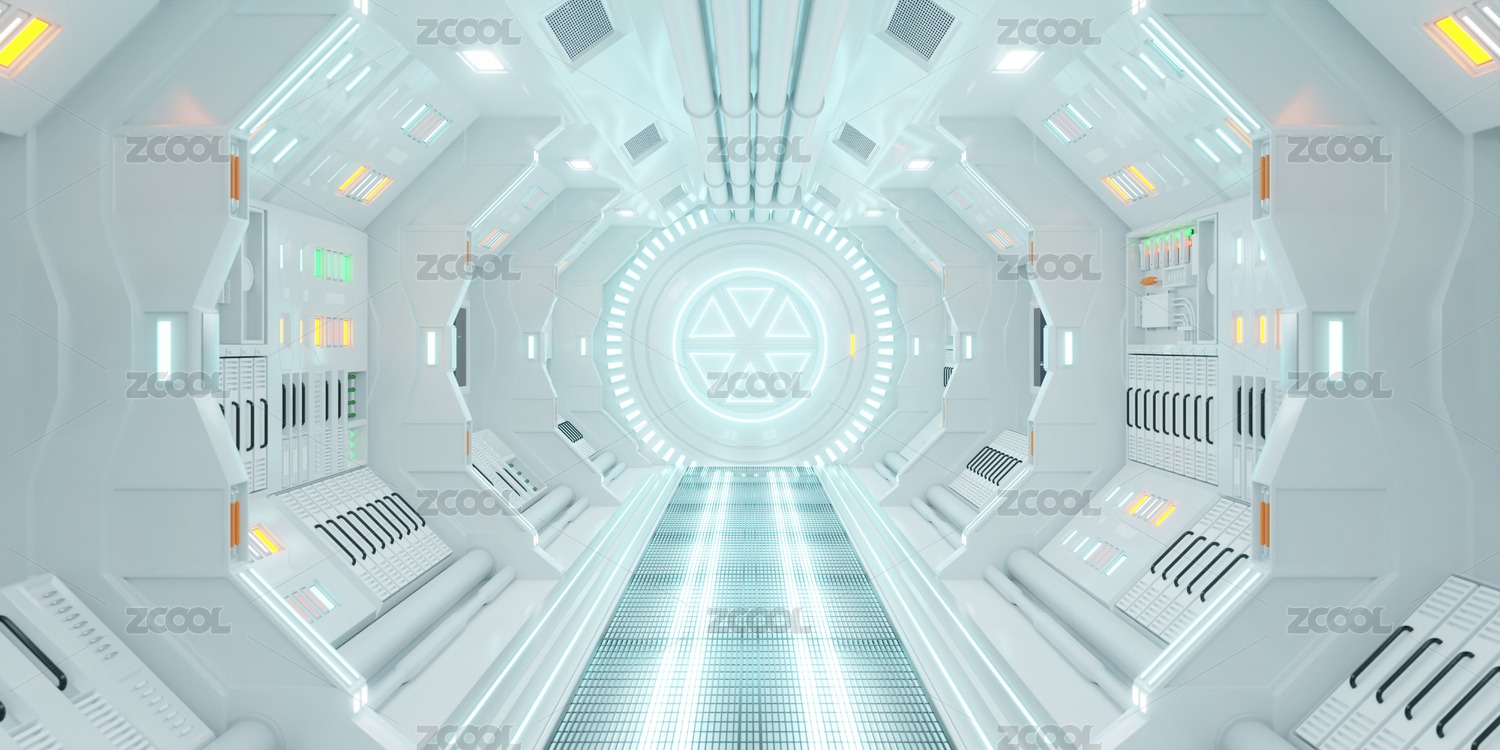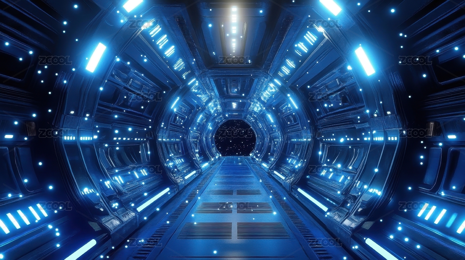 未来高科技宇宙飞船穿越星际之门的科幻插画