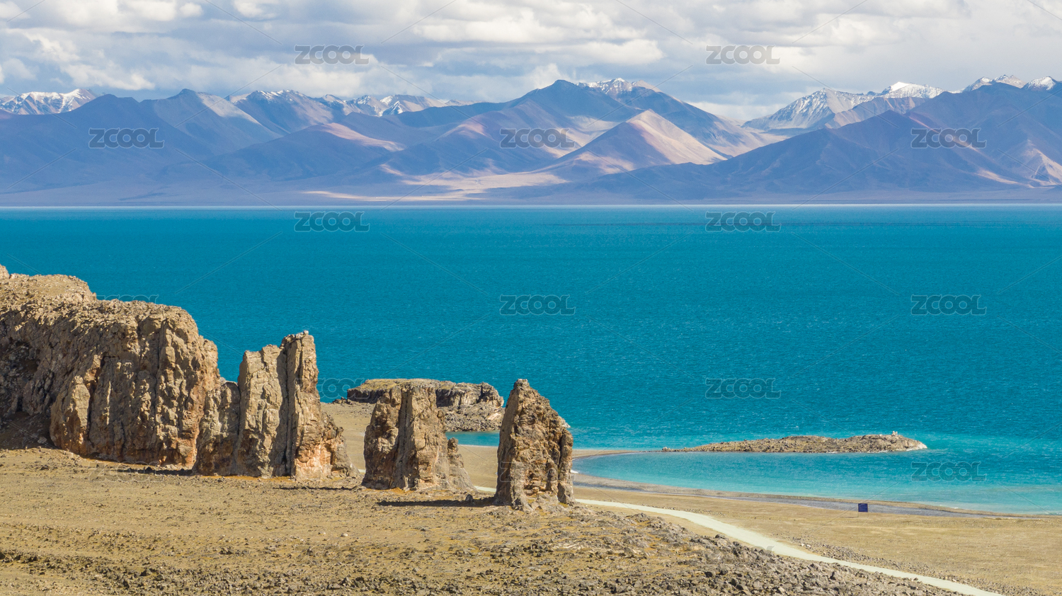 航拍中国西藏那曲市纳木措北岸三生石风景