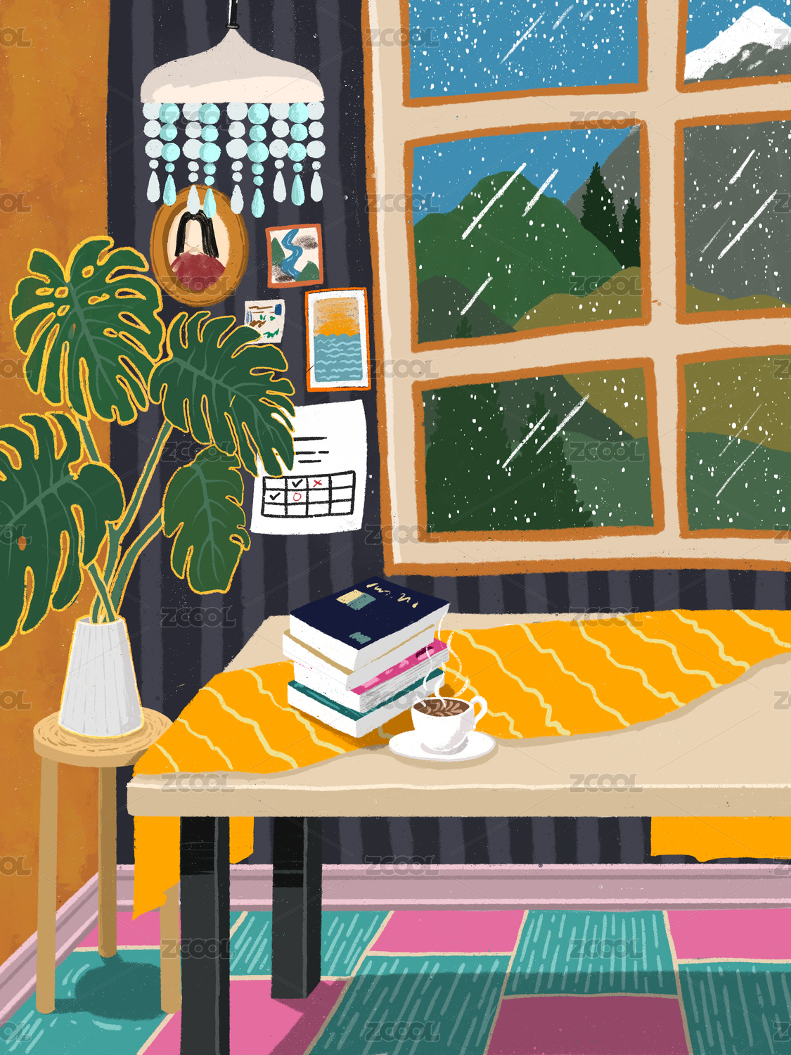 房间角落桌面温馨儿童插画