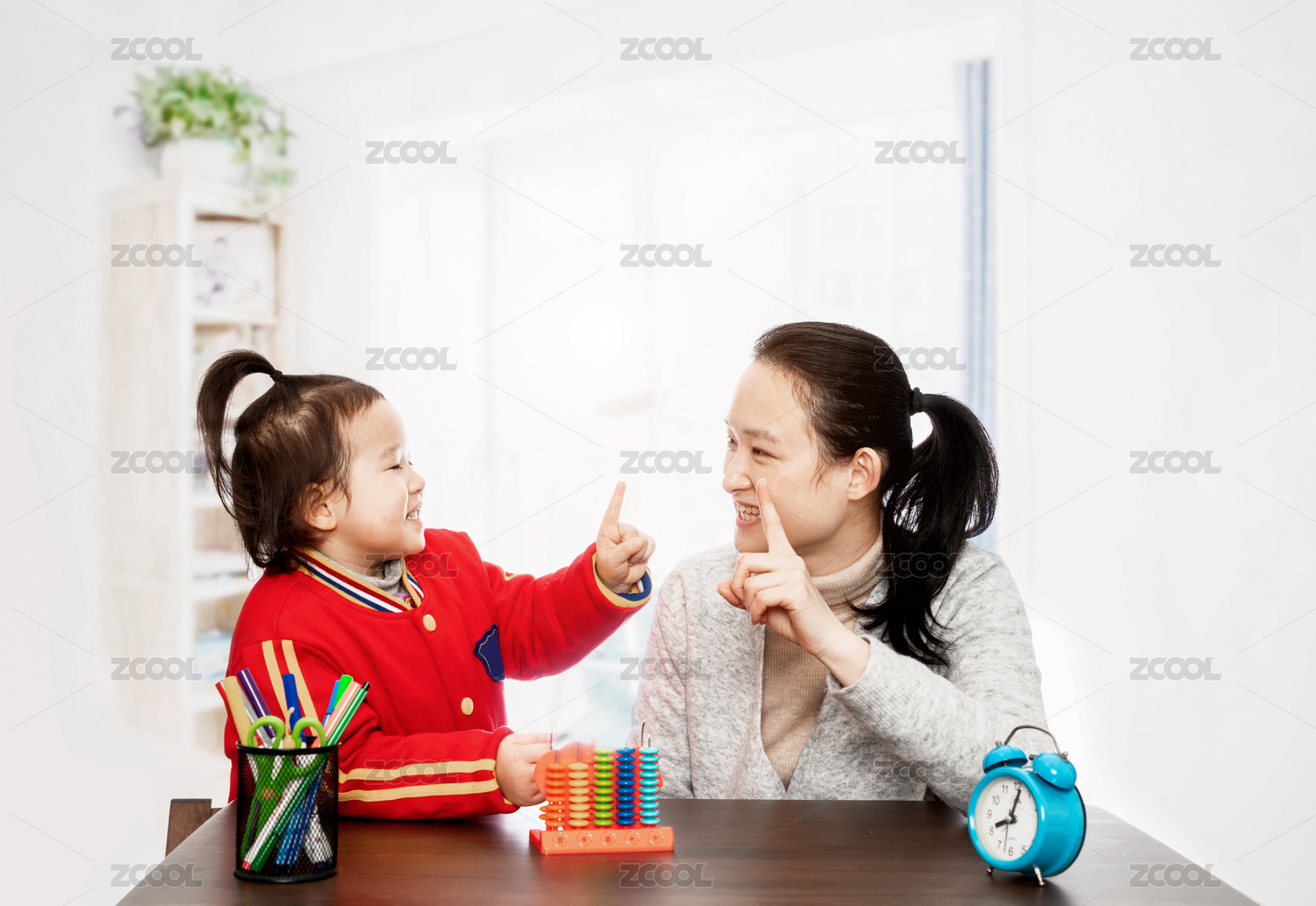 妈妈教女儿学习算数