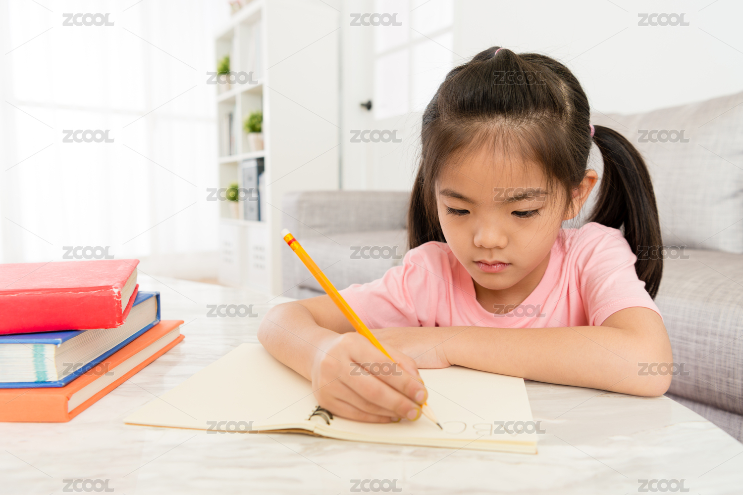 小女孩学习英语
