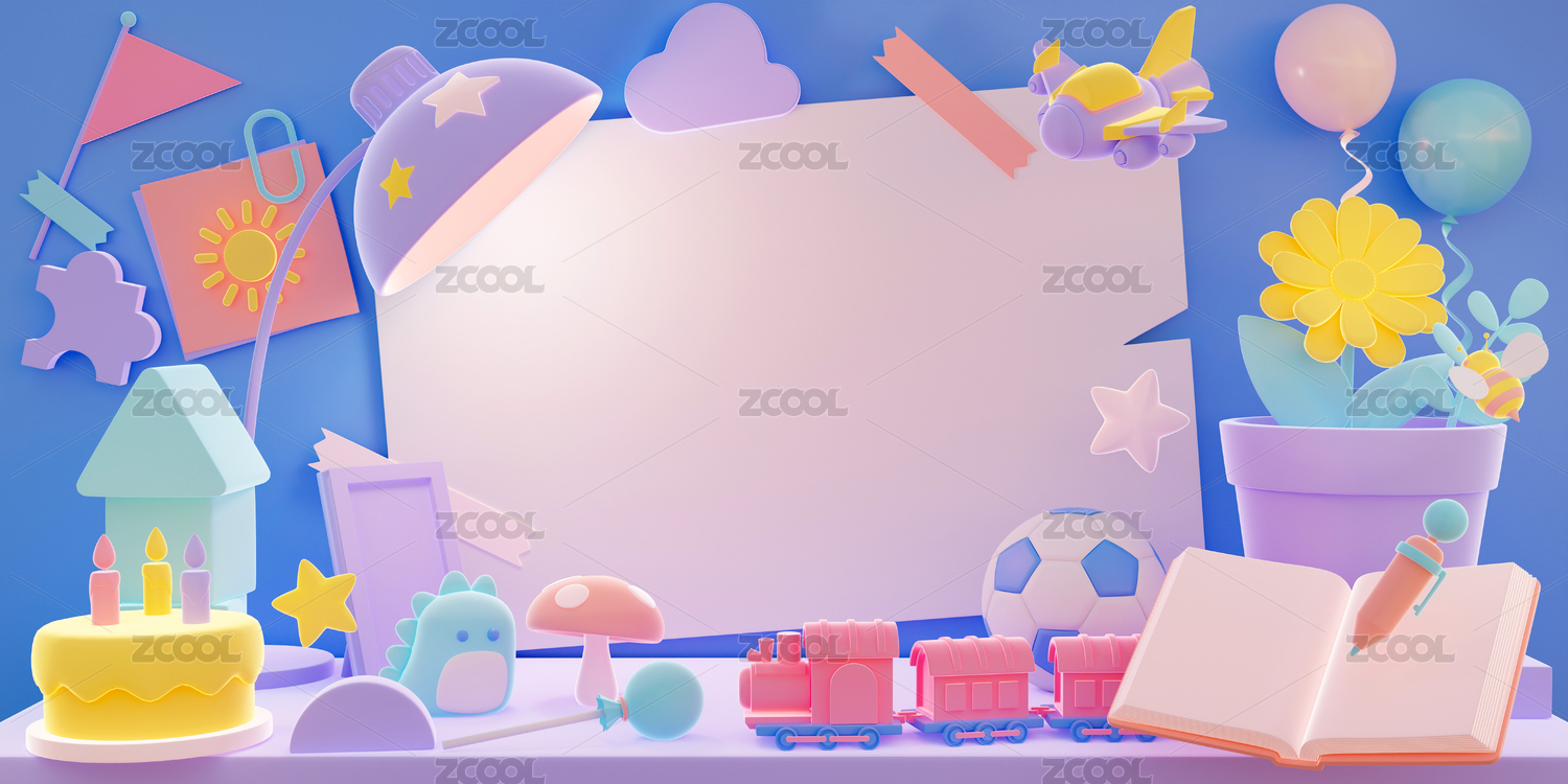 3D儿童房间台灯蛋糕玩具小火车桌子图