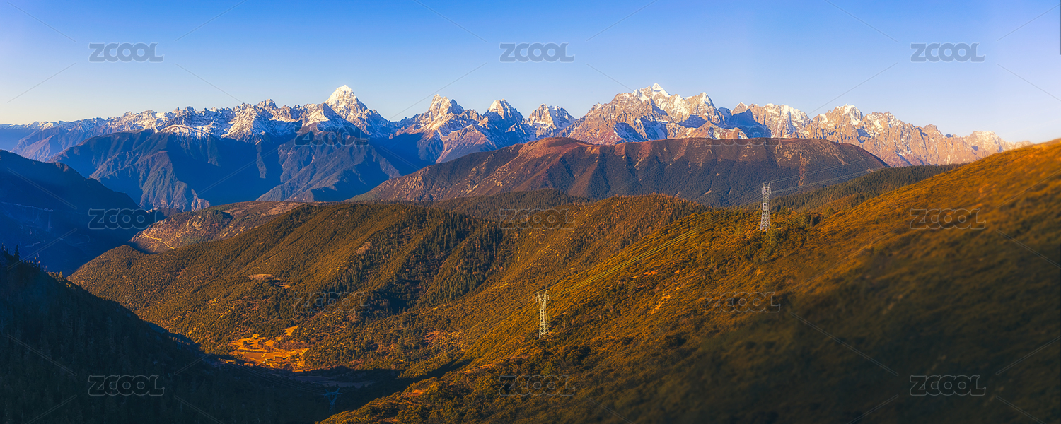 中国昌都的雪山上有阳光洒落在