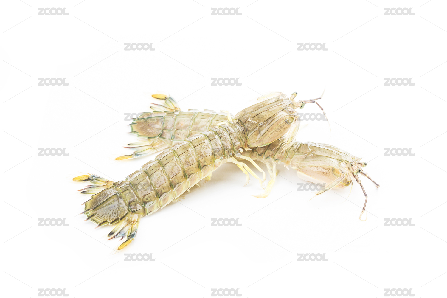 白背景上一只新鲜的皮皮虾