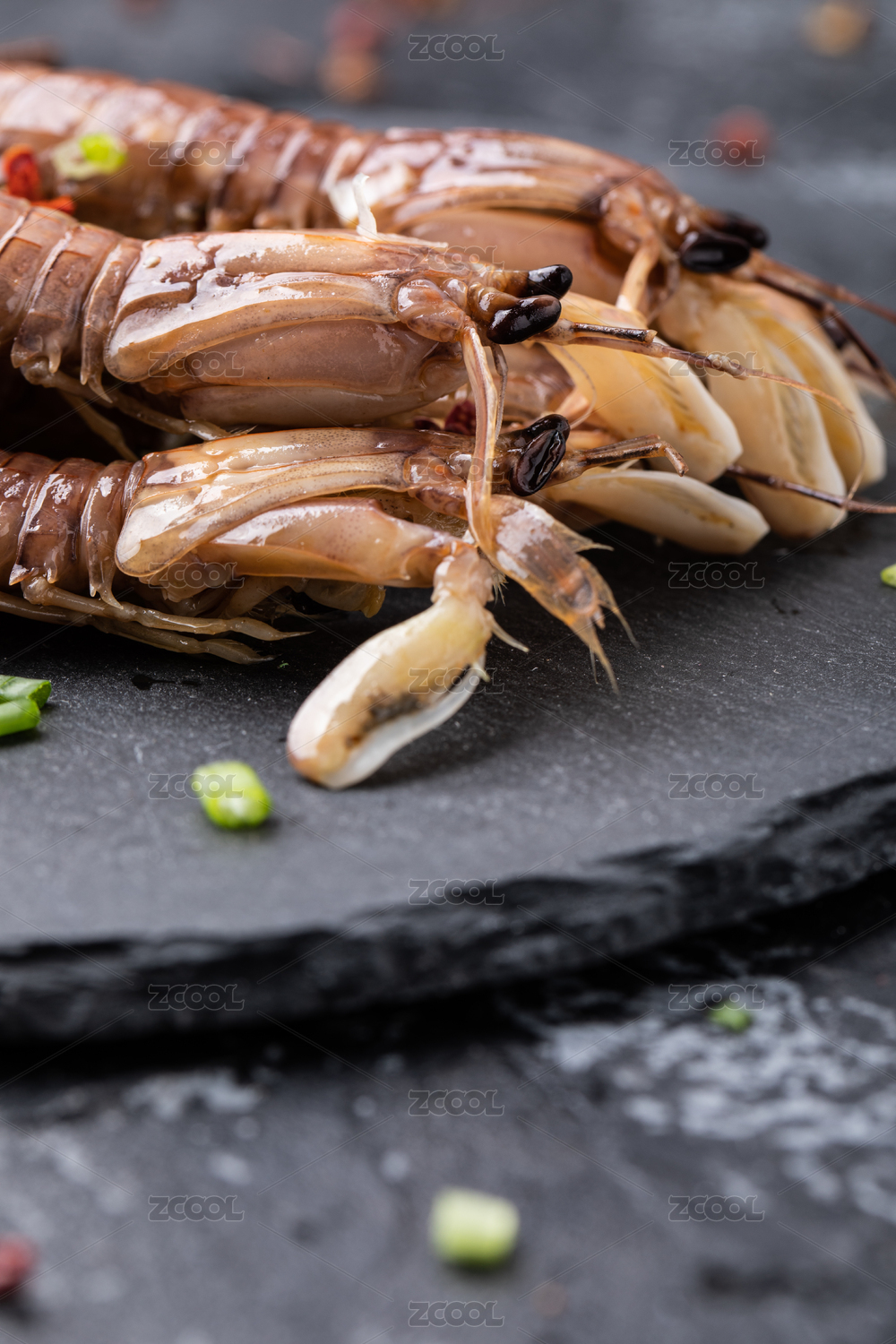 海鲜皮皮虾摆放在桌面上特写