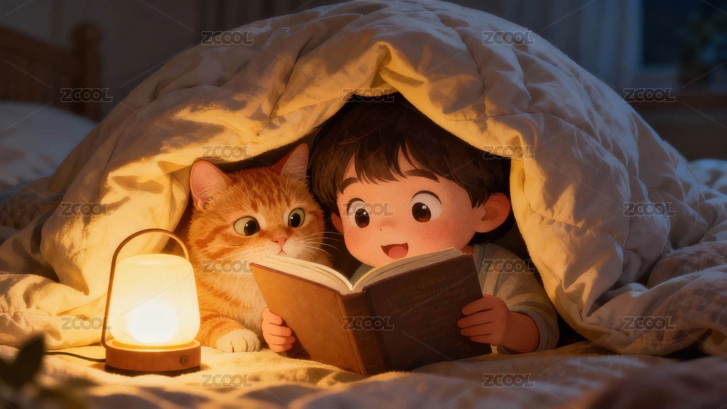男孩与猫共读绘本