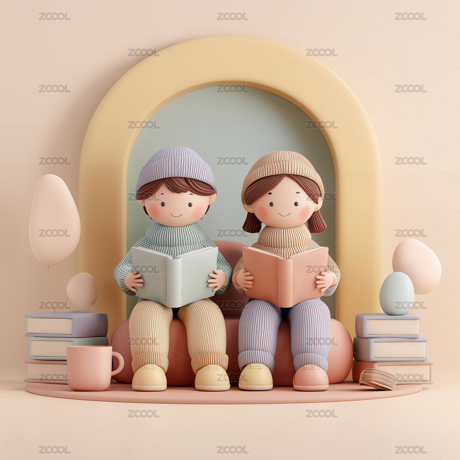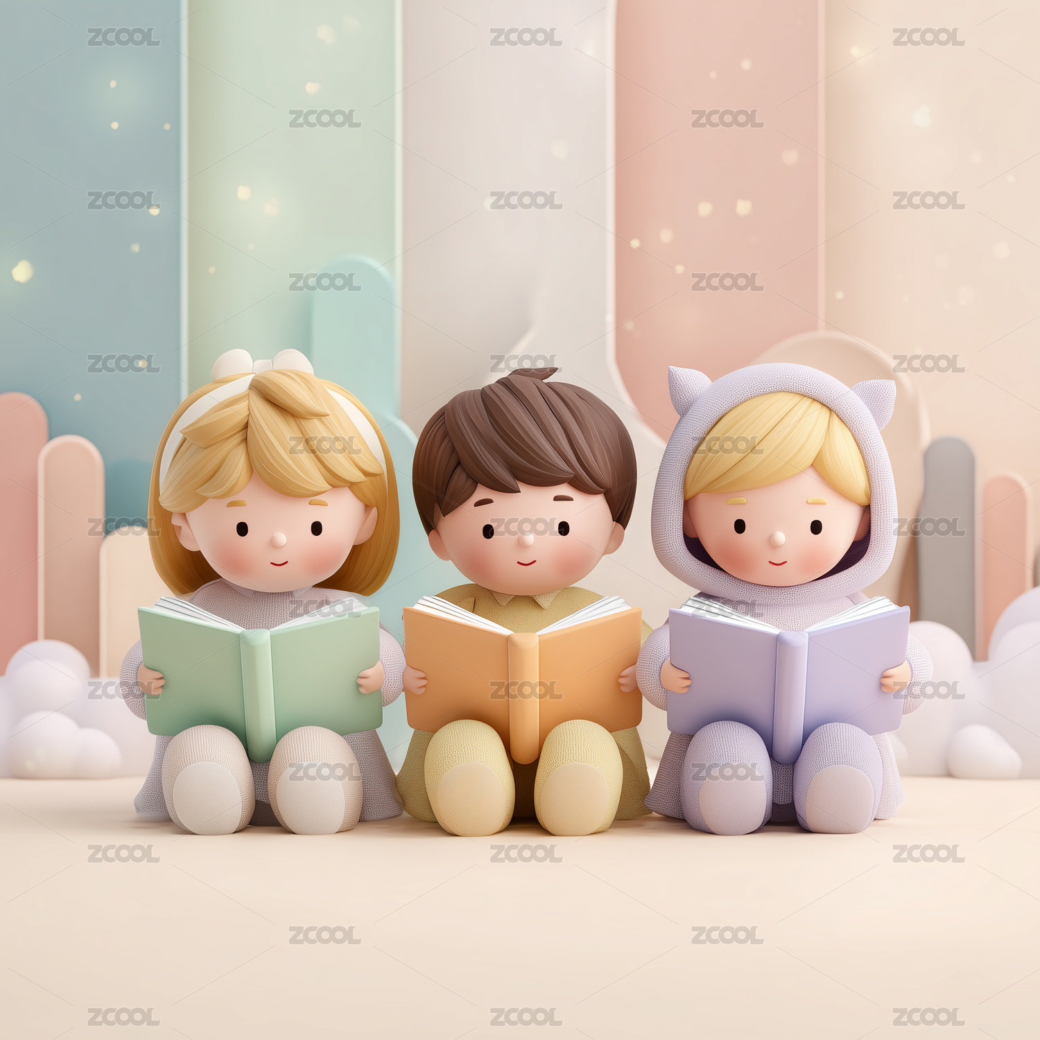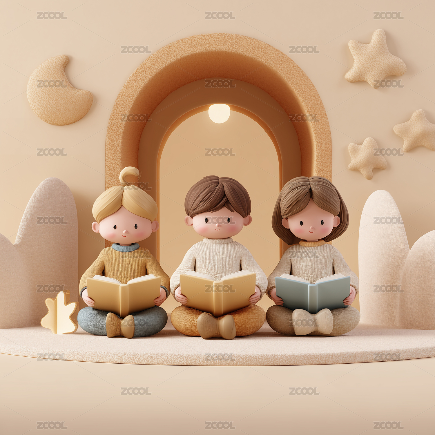 孩子们共读绘本3D场景