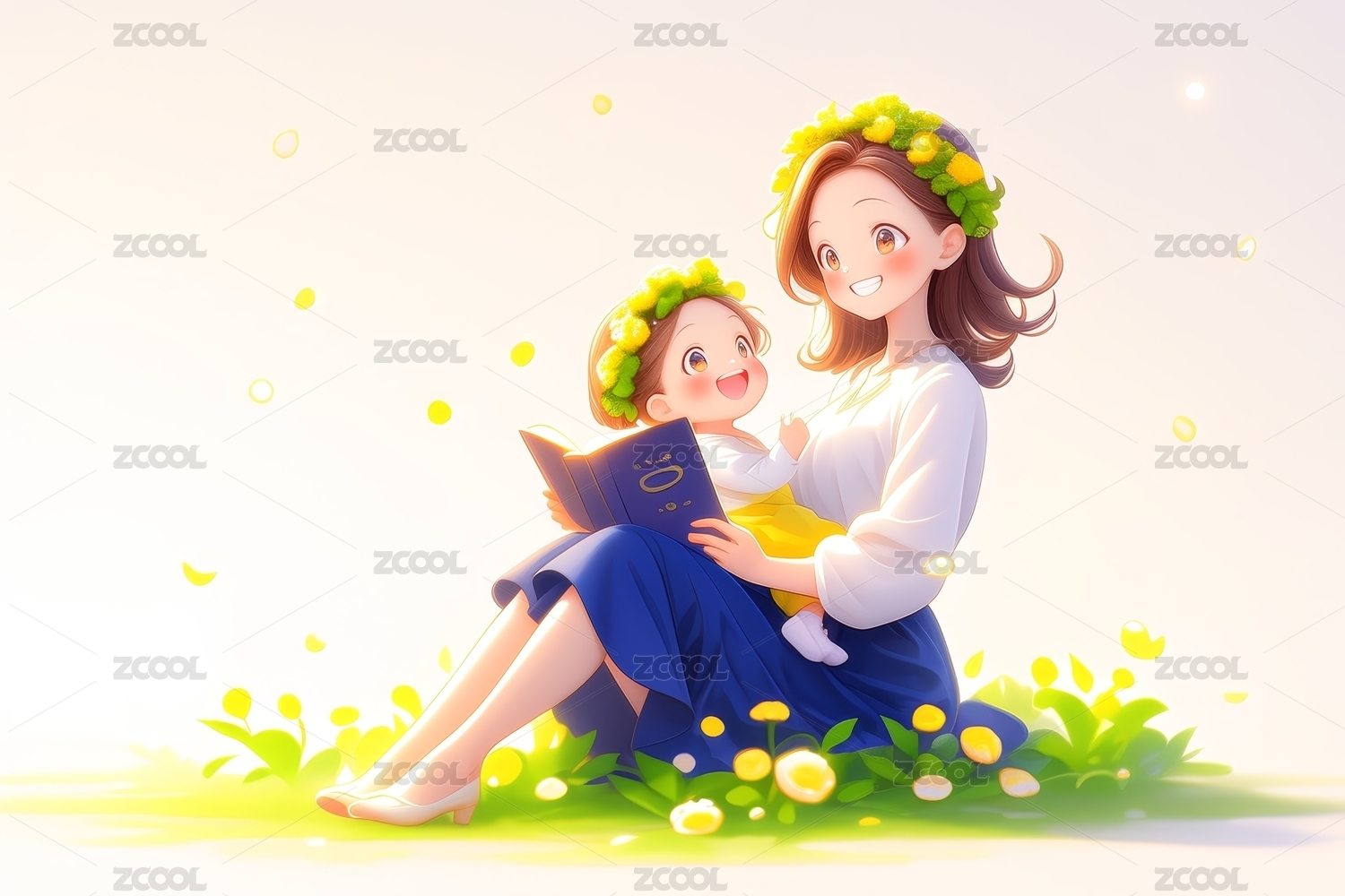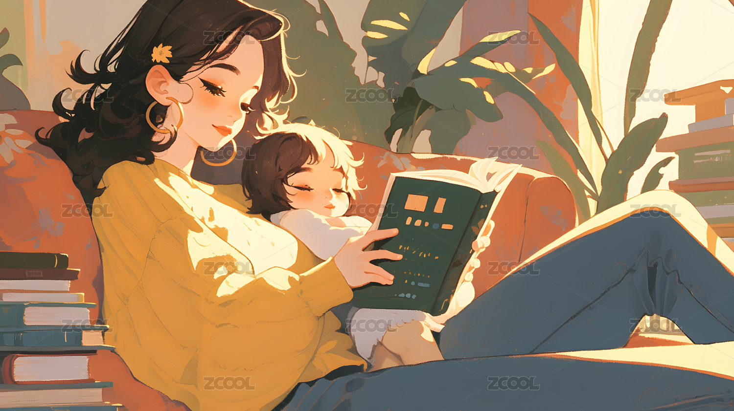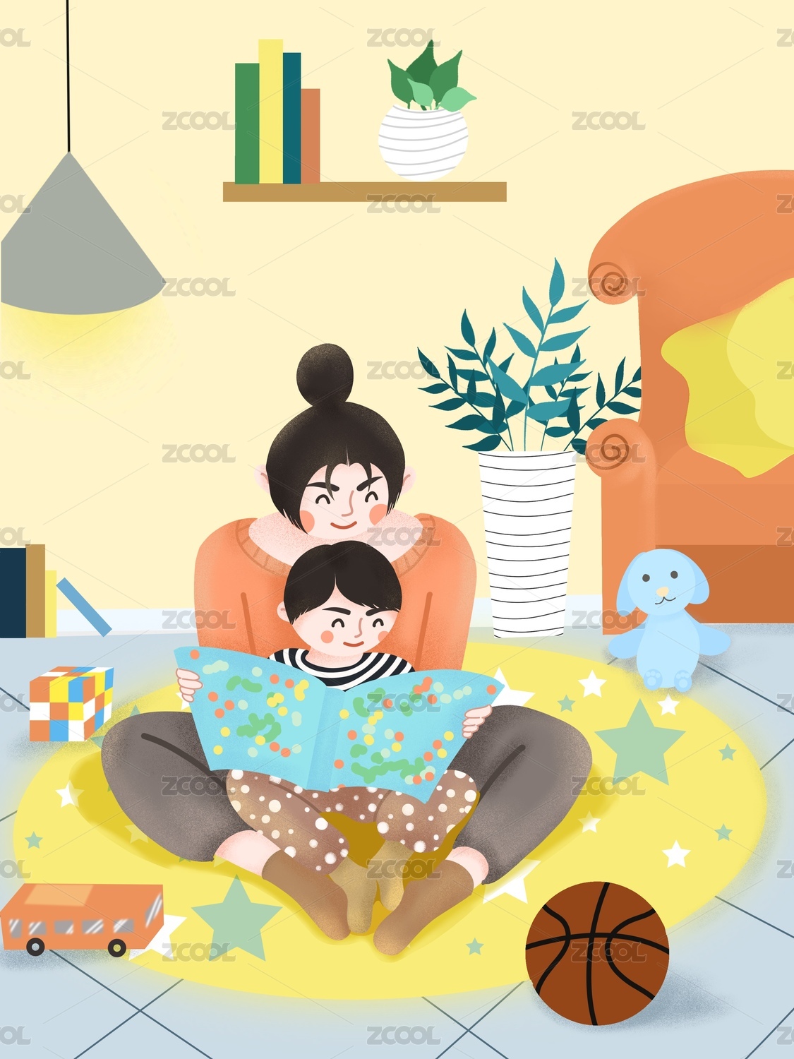 亲子阅读插画