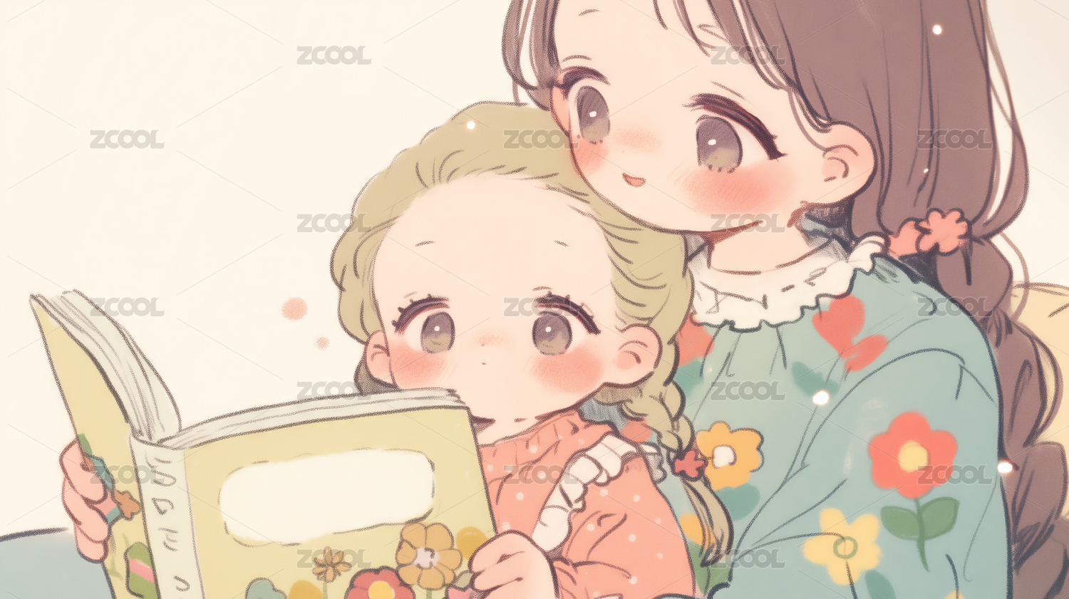 母亲与女儿共读绘本