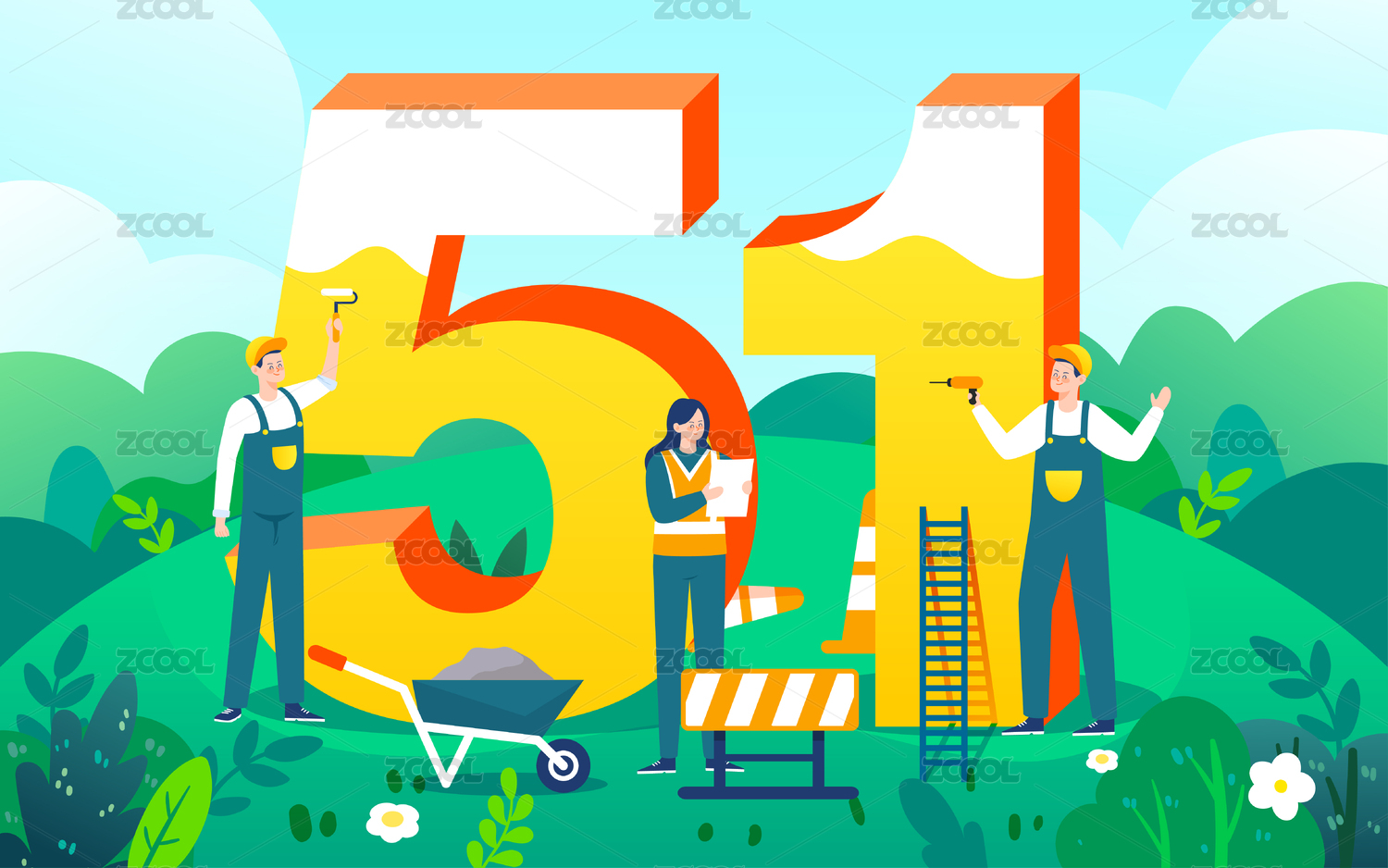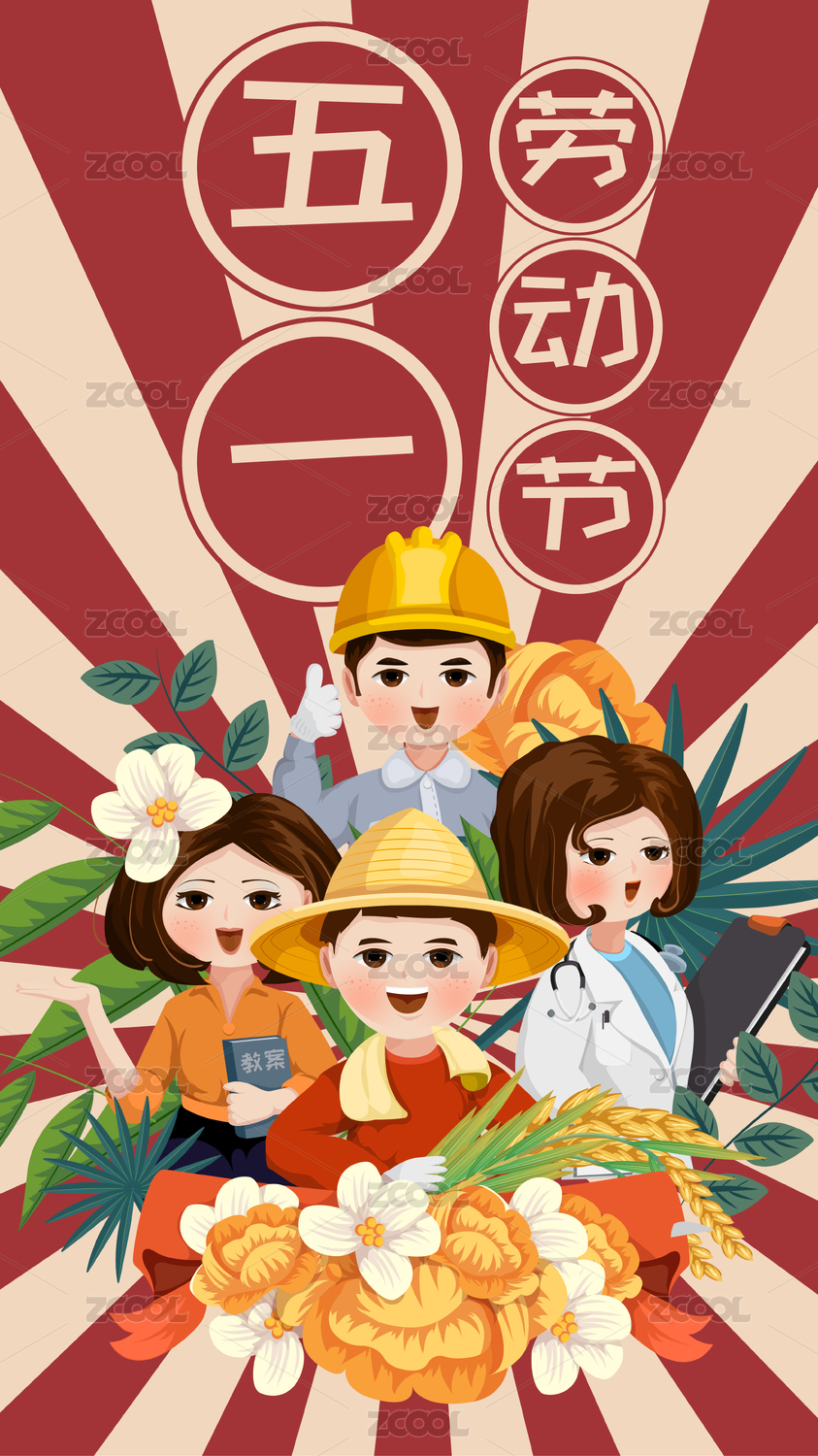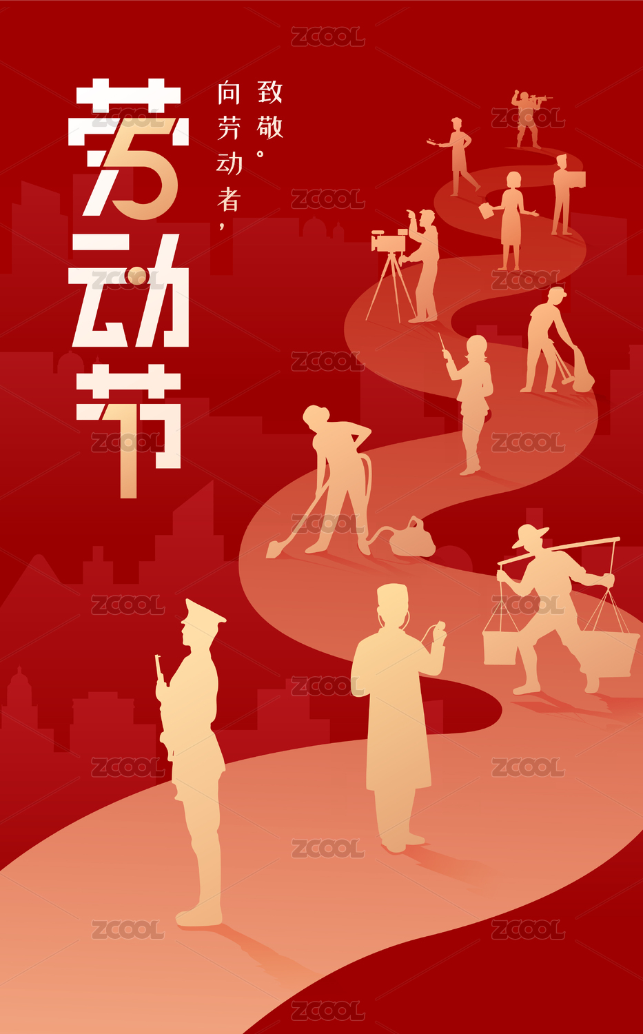 五一劳动节快乐建筑工人插画致敬劳动者海报