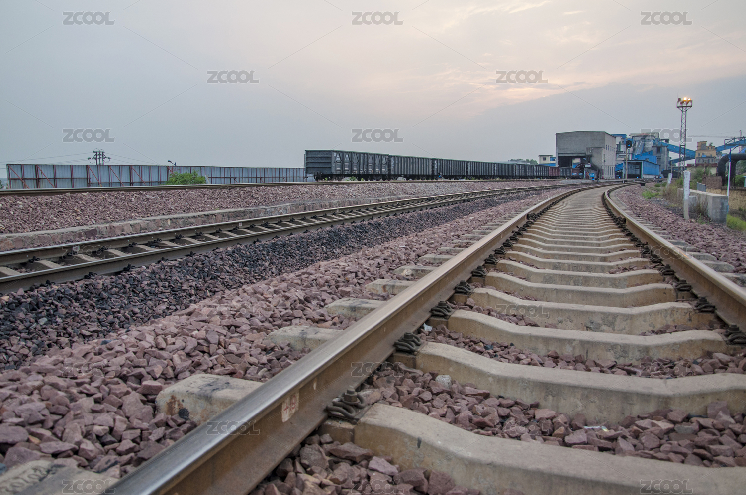 凌晨的货运火车站,铁轨,火车,贸易往来