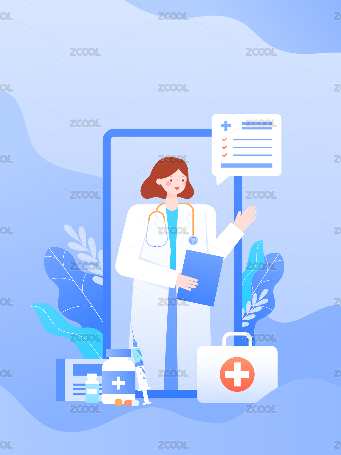 医生讲解医疗健康知识炫彩科技风矢量插画