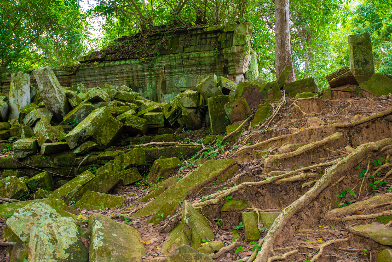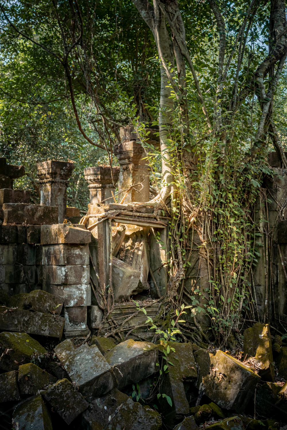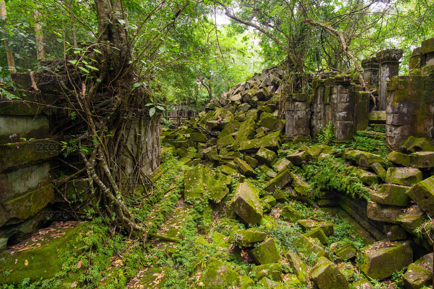 柬埔寨崩密列中荒废的自然古迹风光