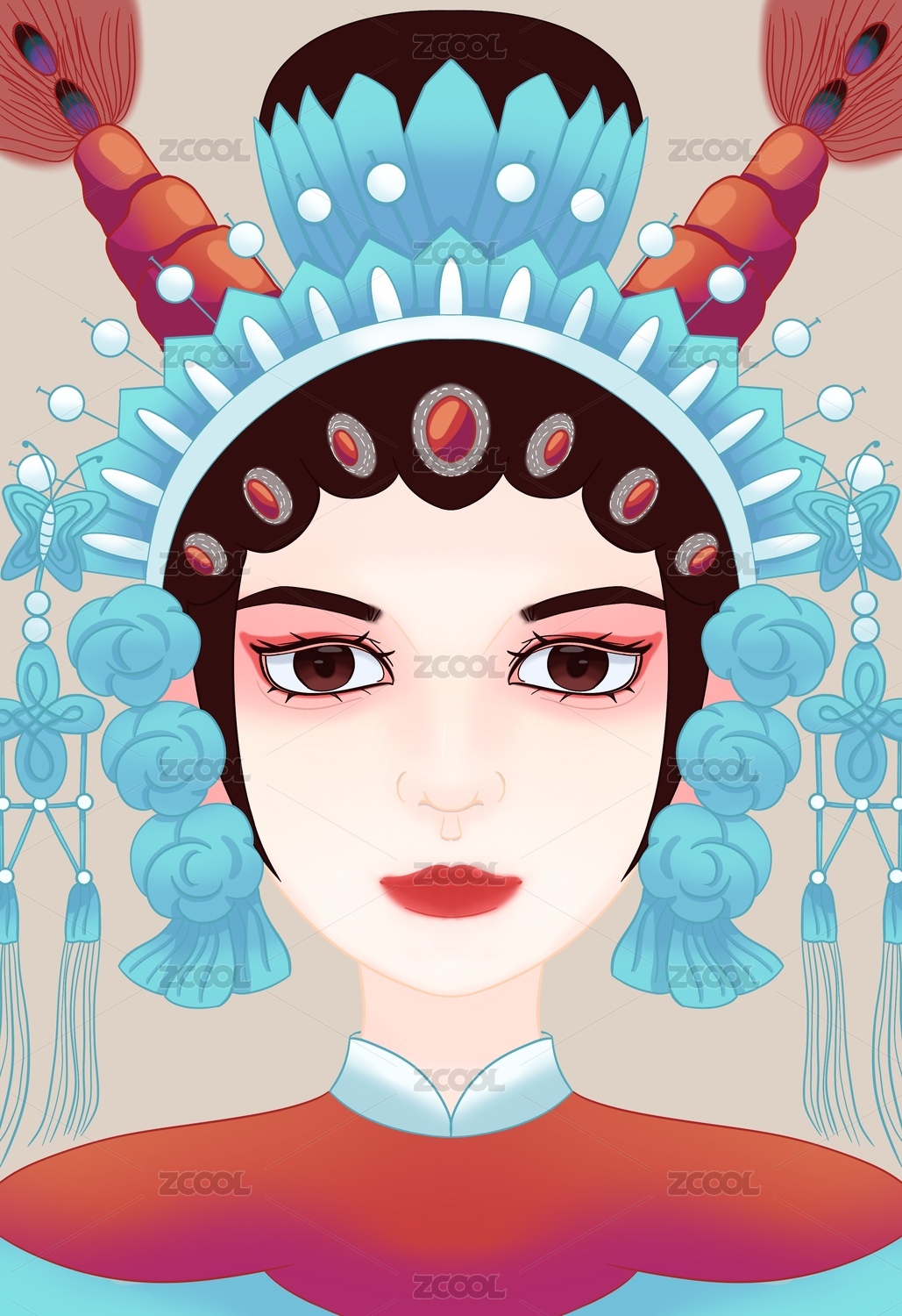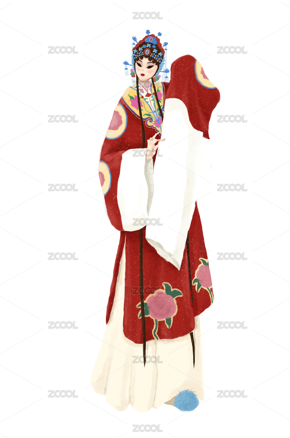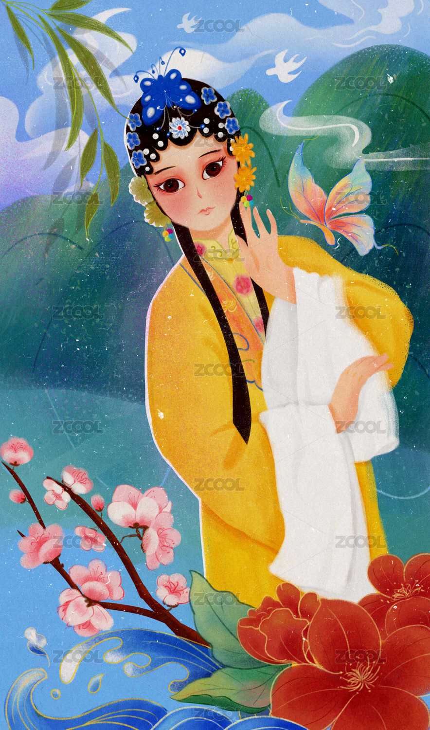 中国戏曲人物花旦插画