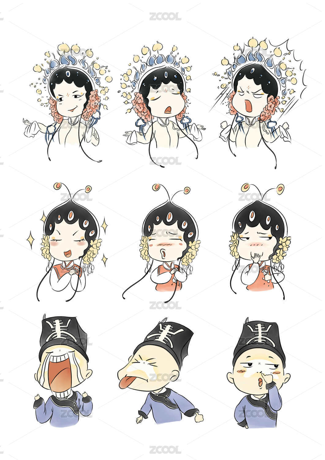 原创手绘国潮风戏曲人物插画