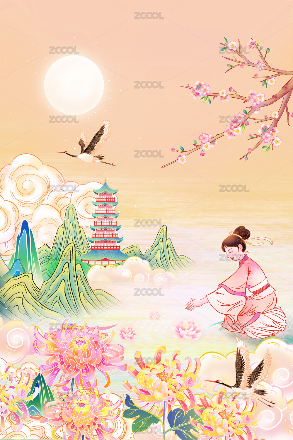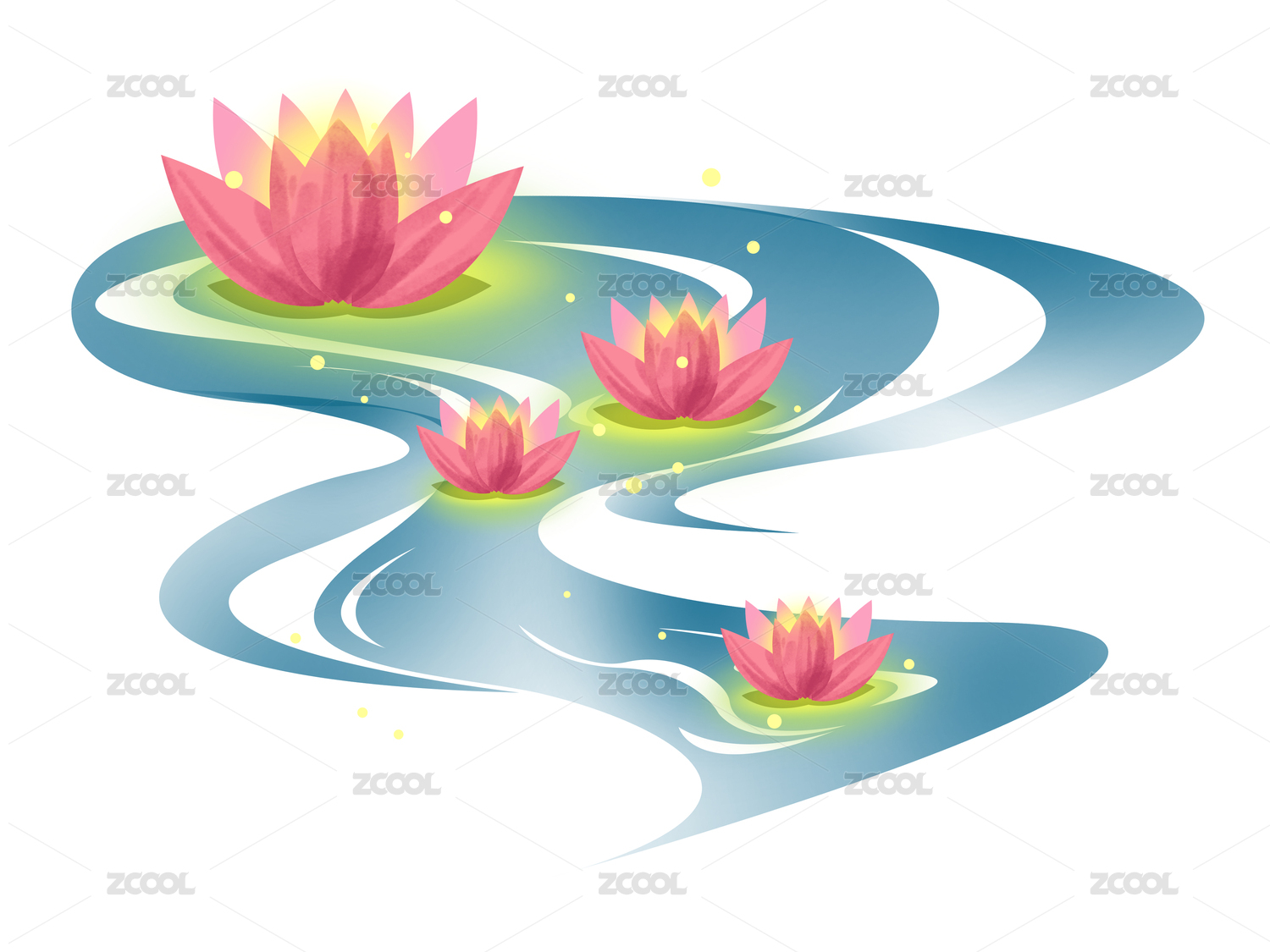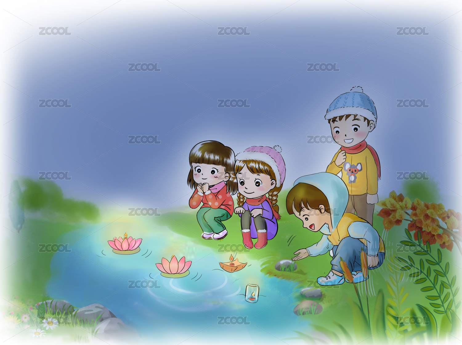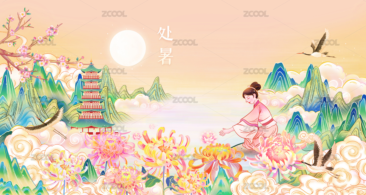处暑节气紫衣小女孩坐在红色锦鲤上放河灯