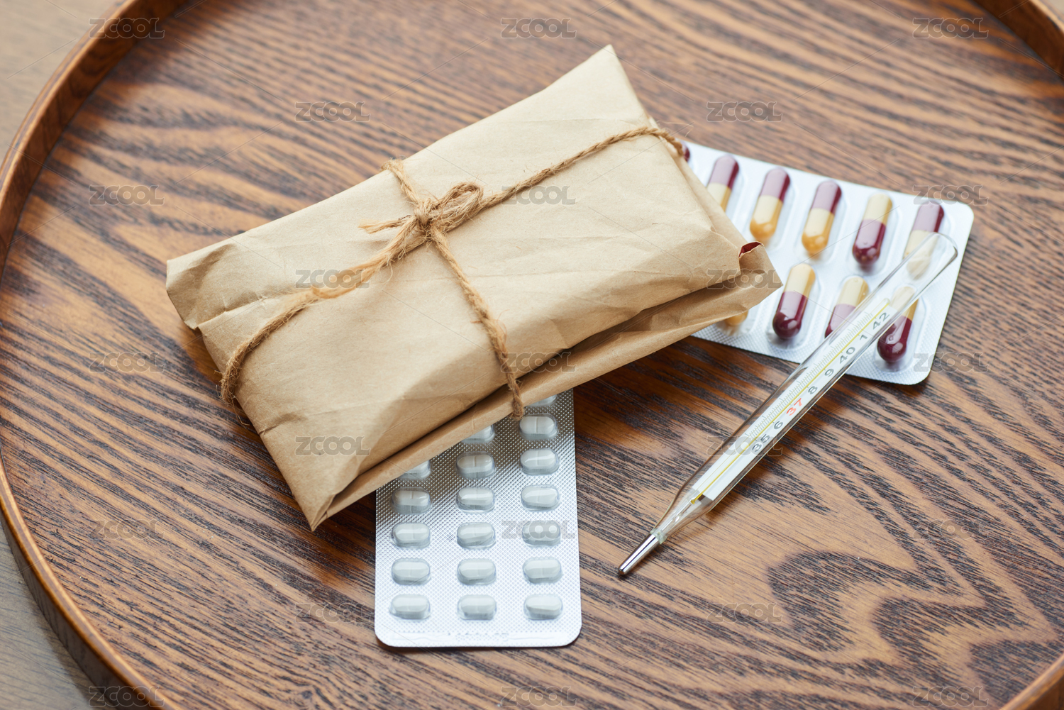 牛皮纸包装的中西药物和水银体温计