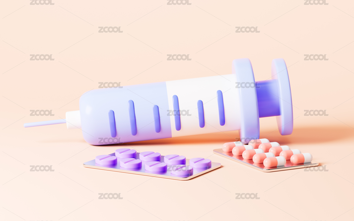 卡通注射器和药物治疗3D渲染