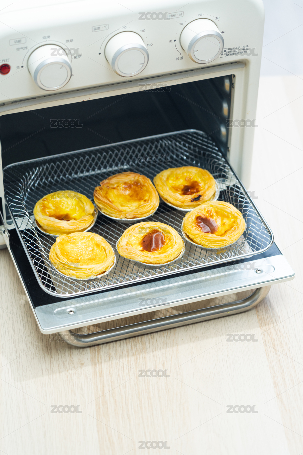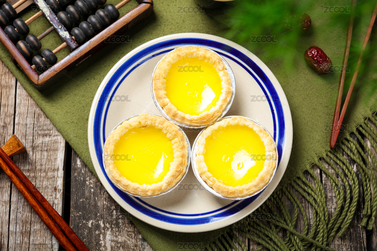 一盘蛋挞摆放在桌面上特写