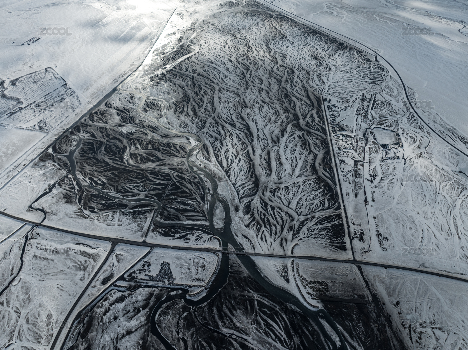 冰岛北极圈塞里雅兰河道冰冻纹理航拍