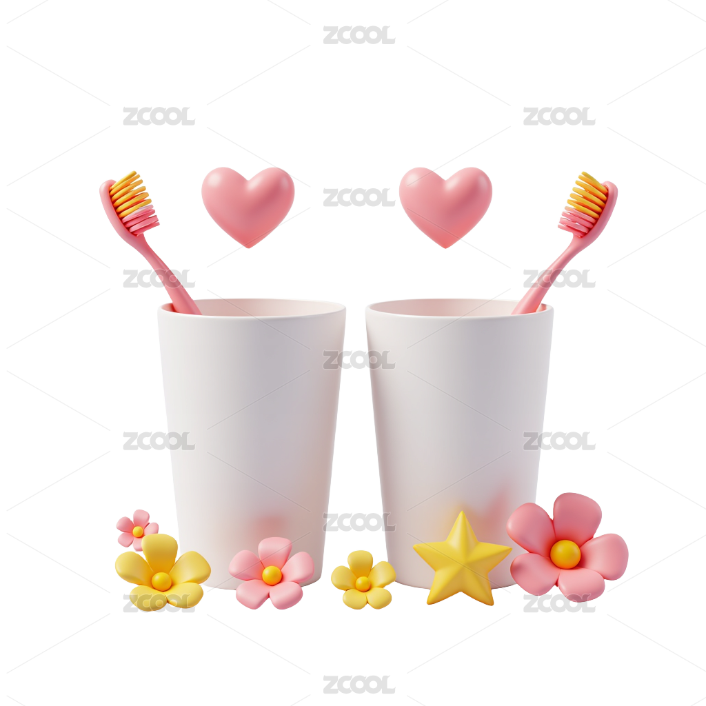 一对情侣款牙刷漱口杯套装凡在白色桌面上