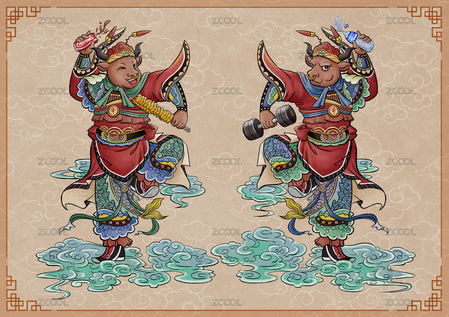 趣味双牛门神