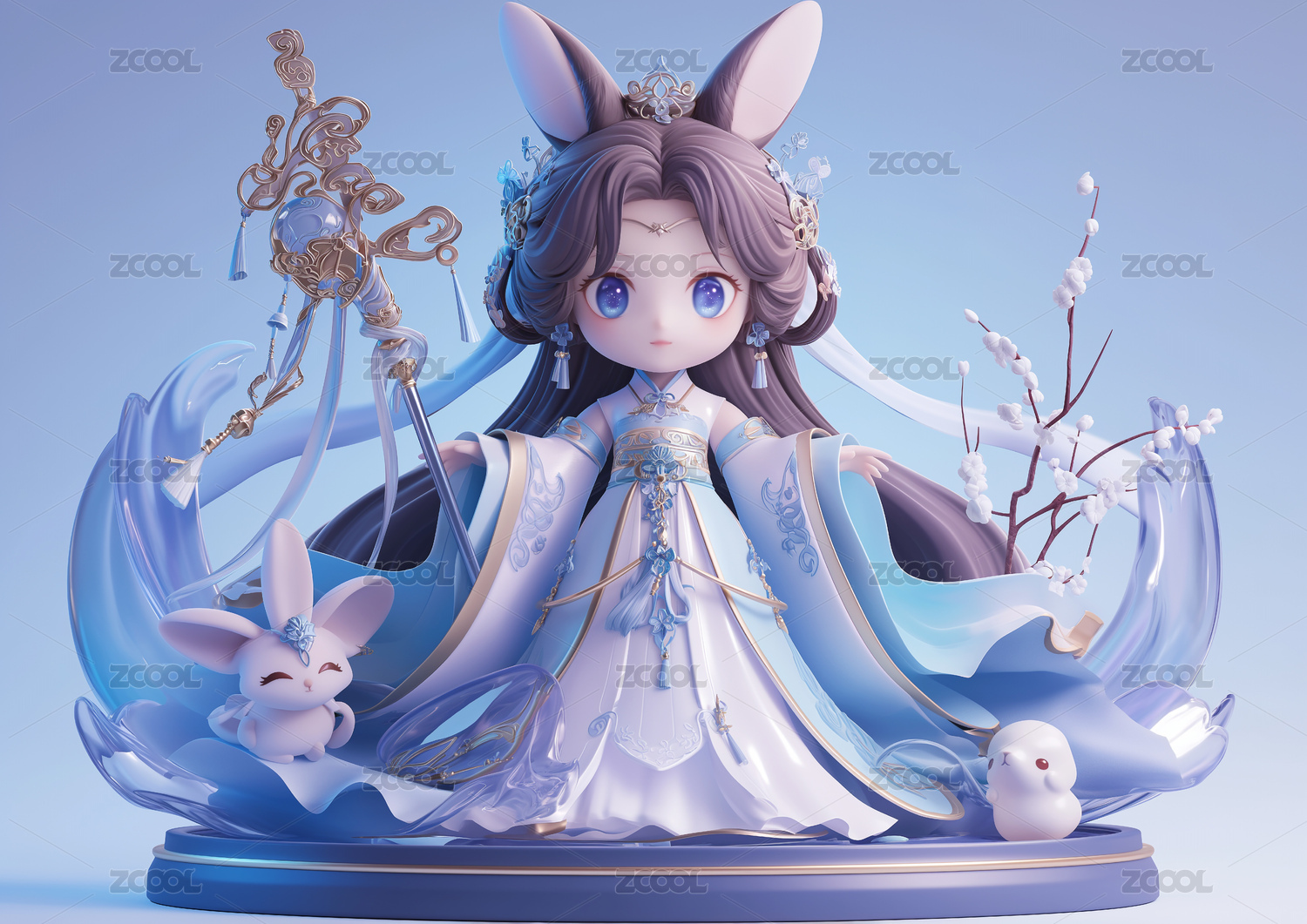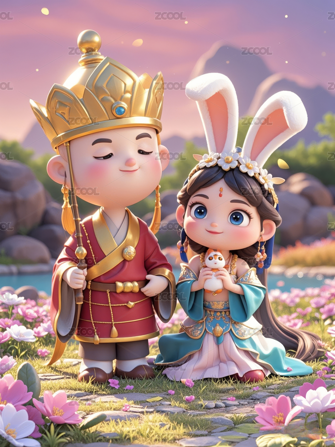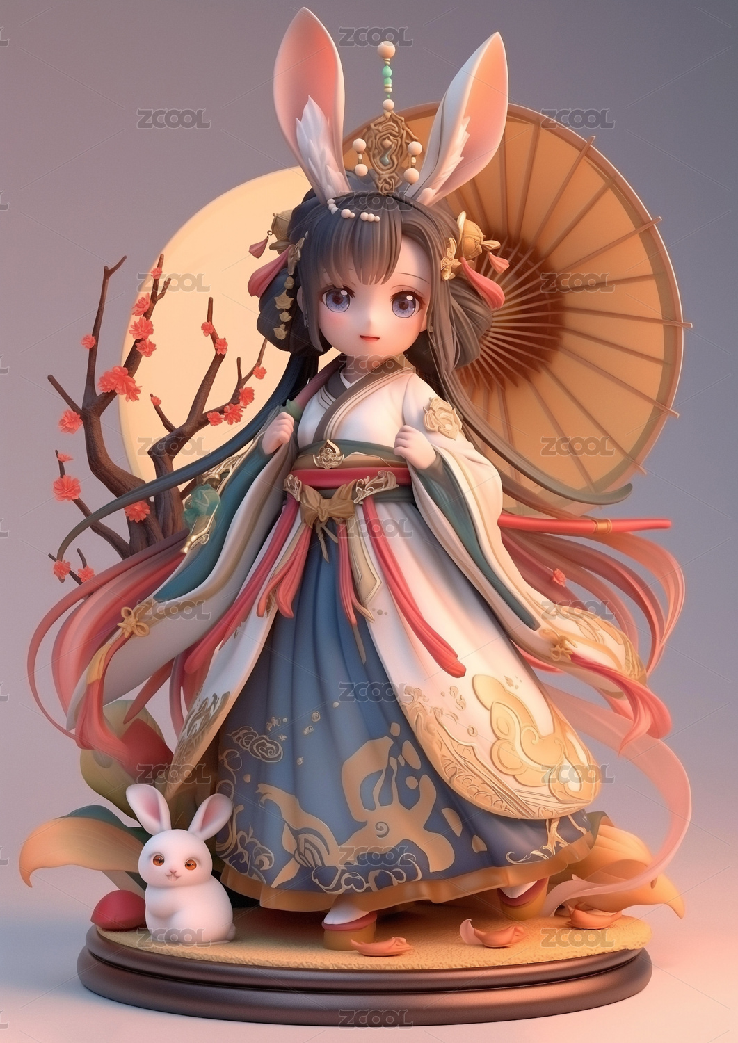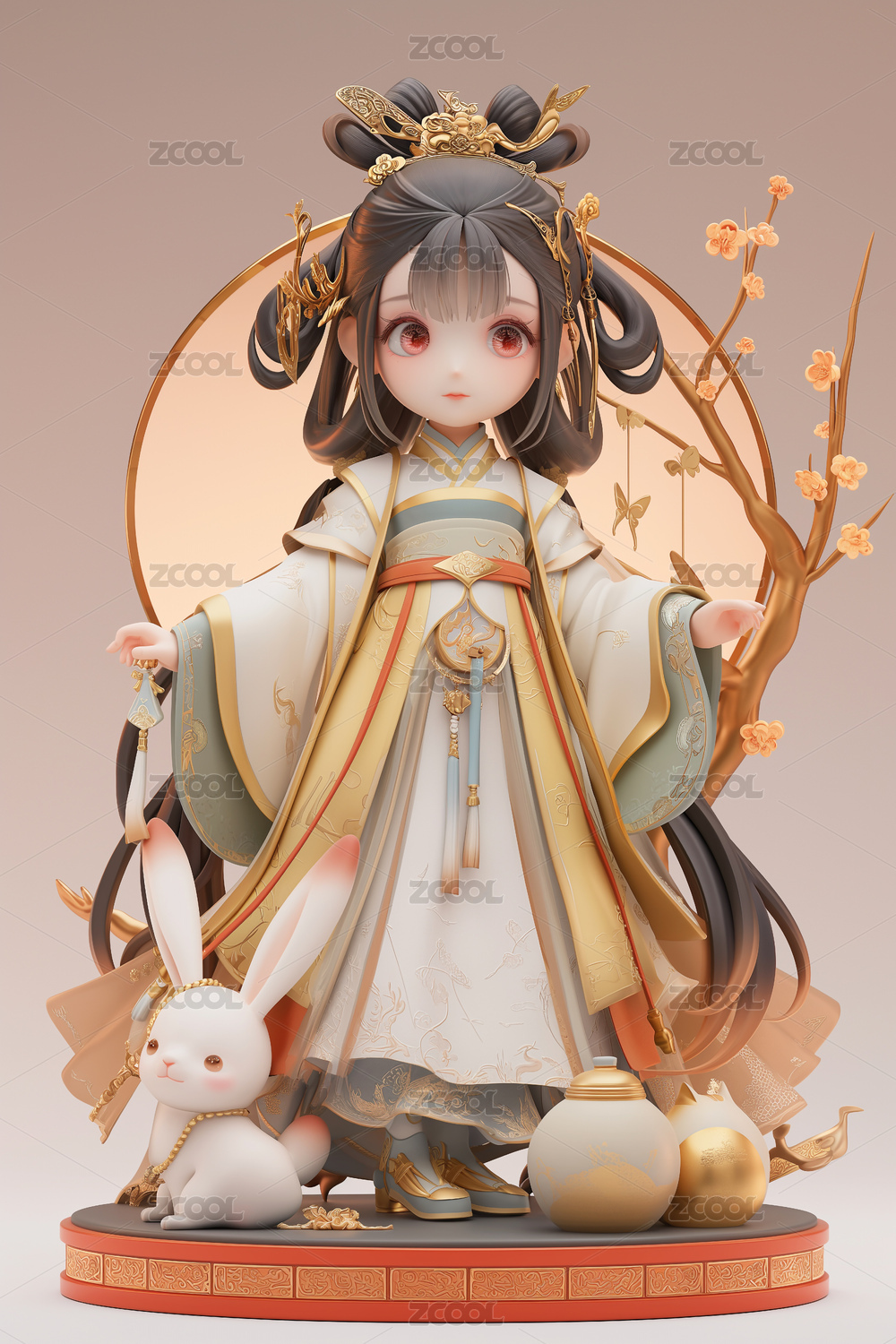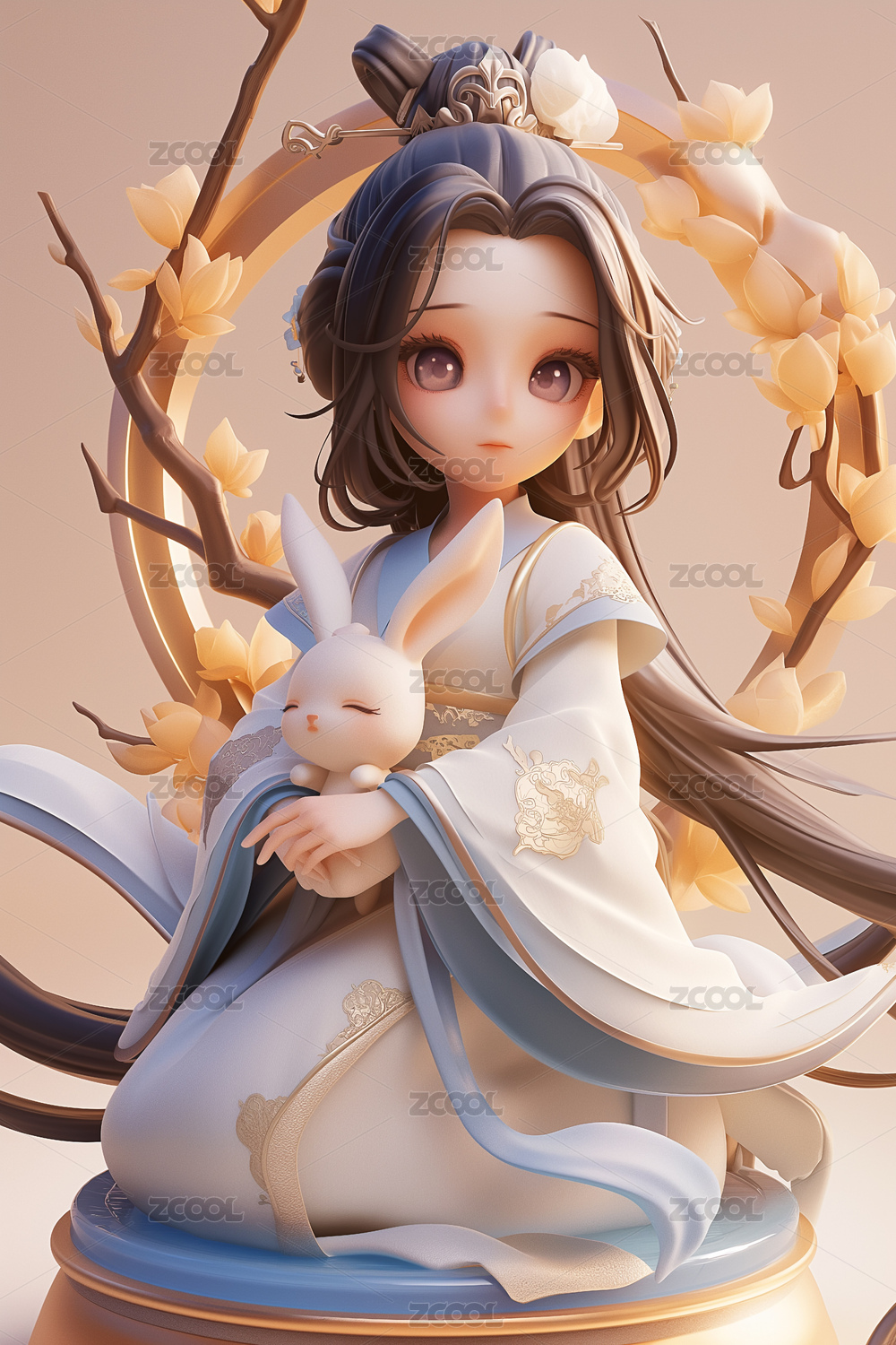 中国神话传说嫦娥和玉兔手办模型