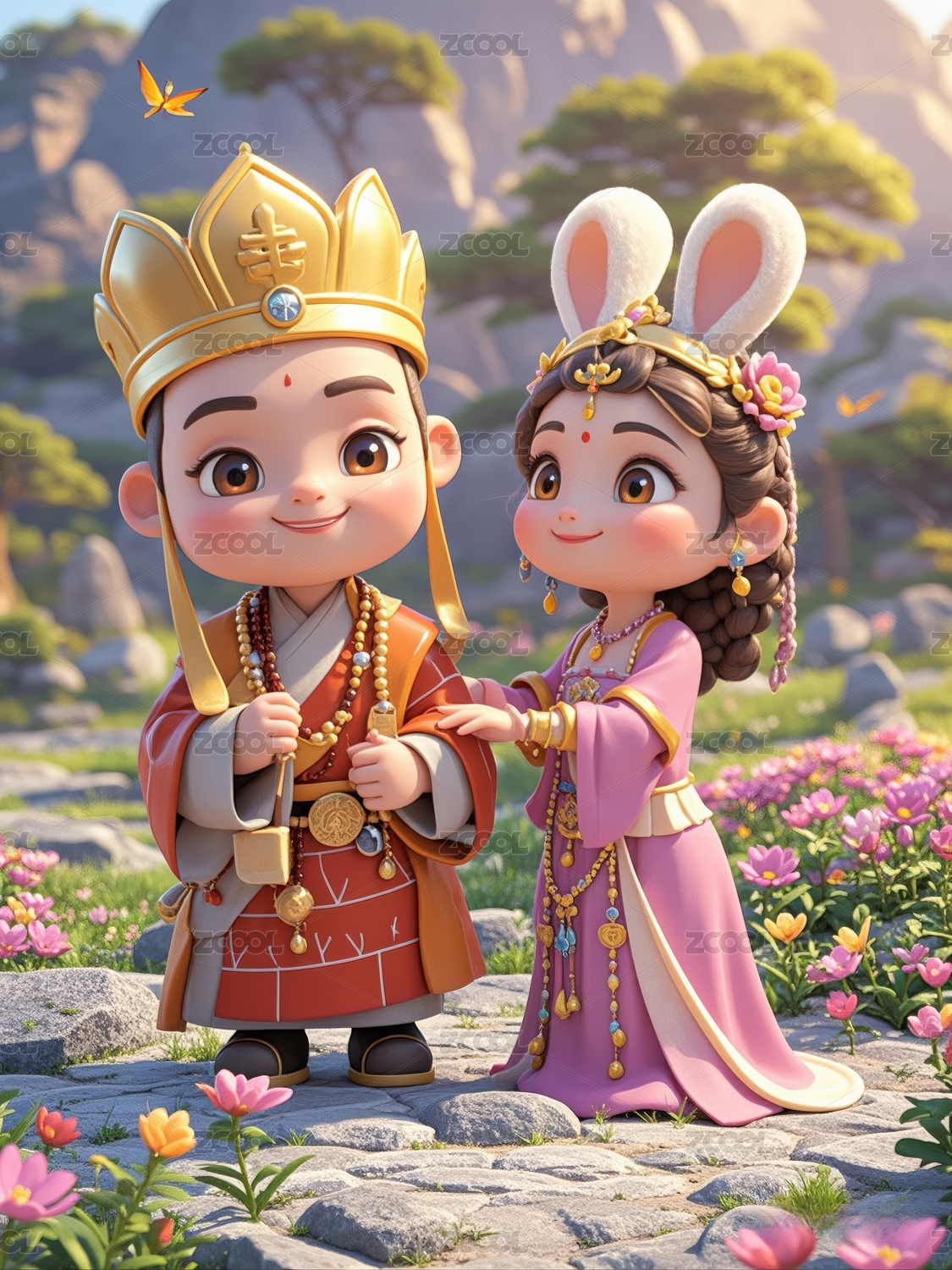 西游记玉兔精搀扶石头和芭蕉叶