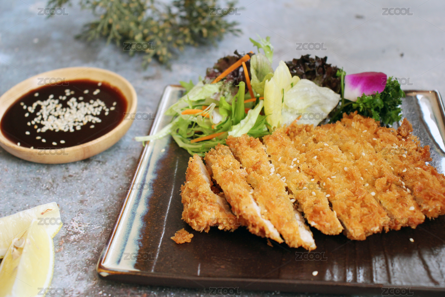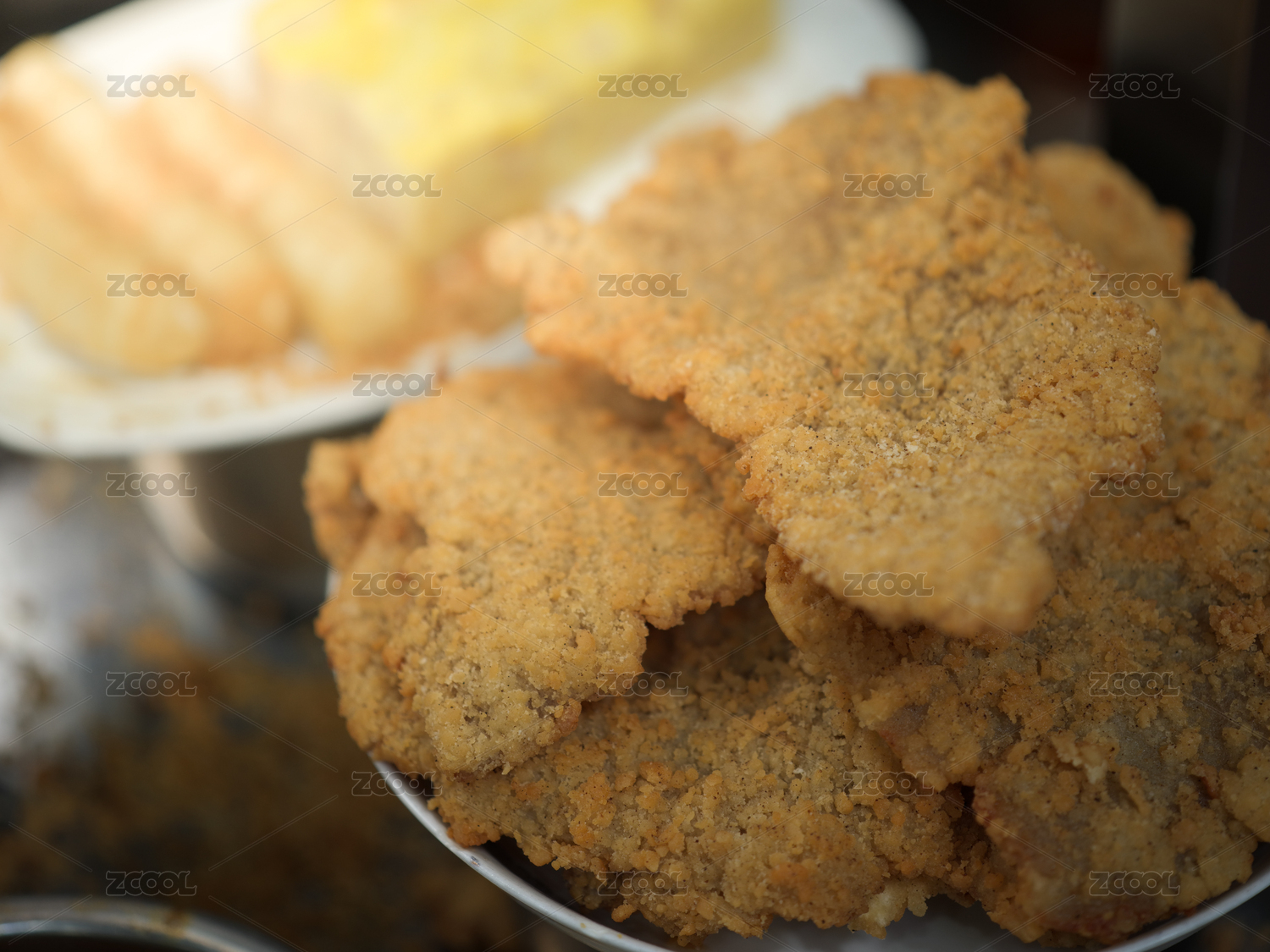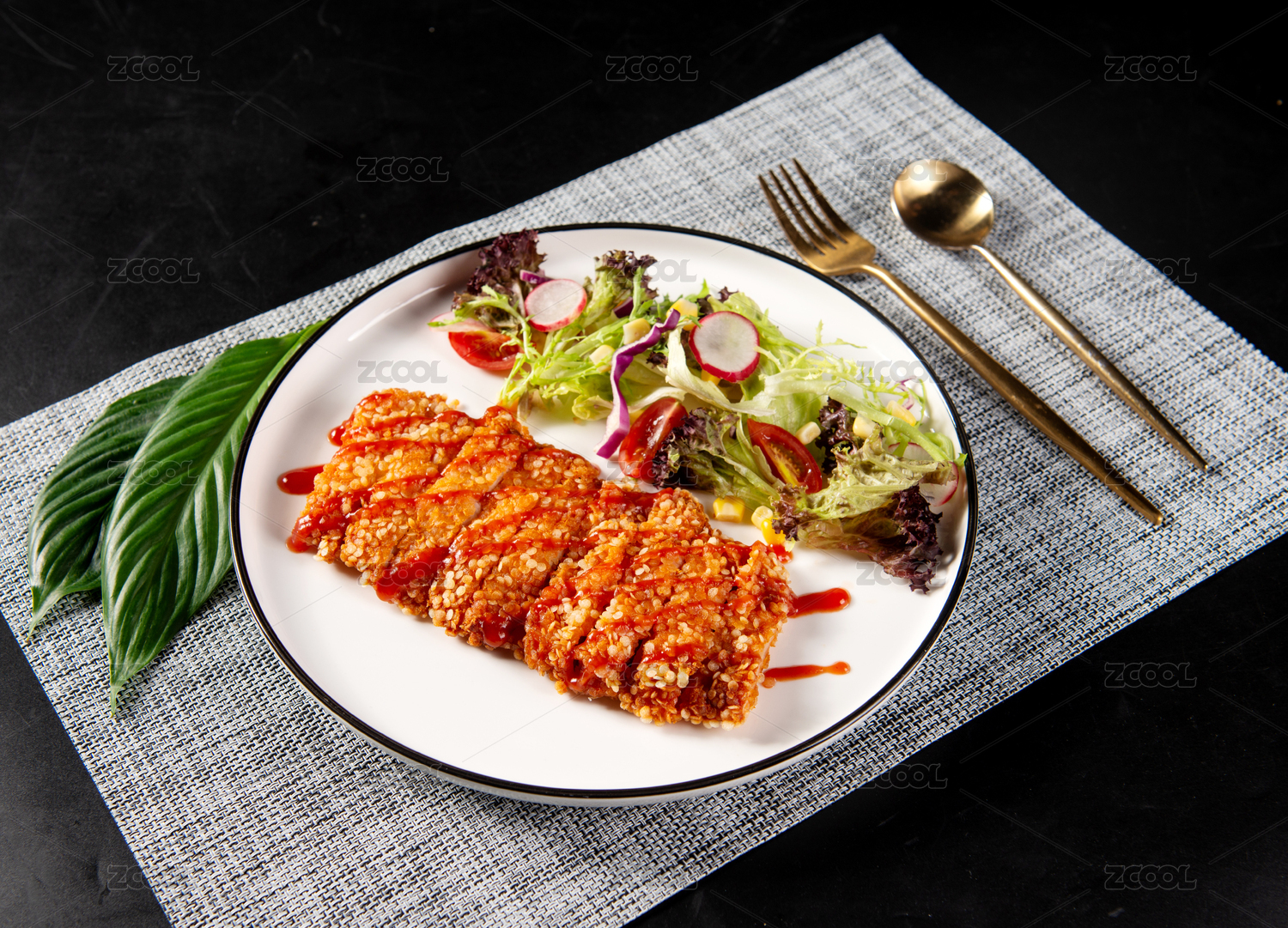 中国特色美食小吃炸鸡排生菜酱汁插画