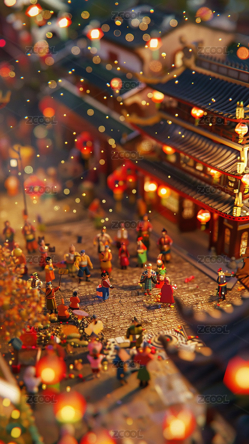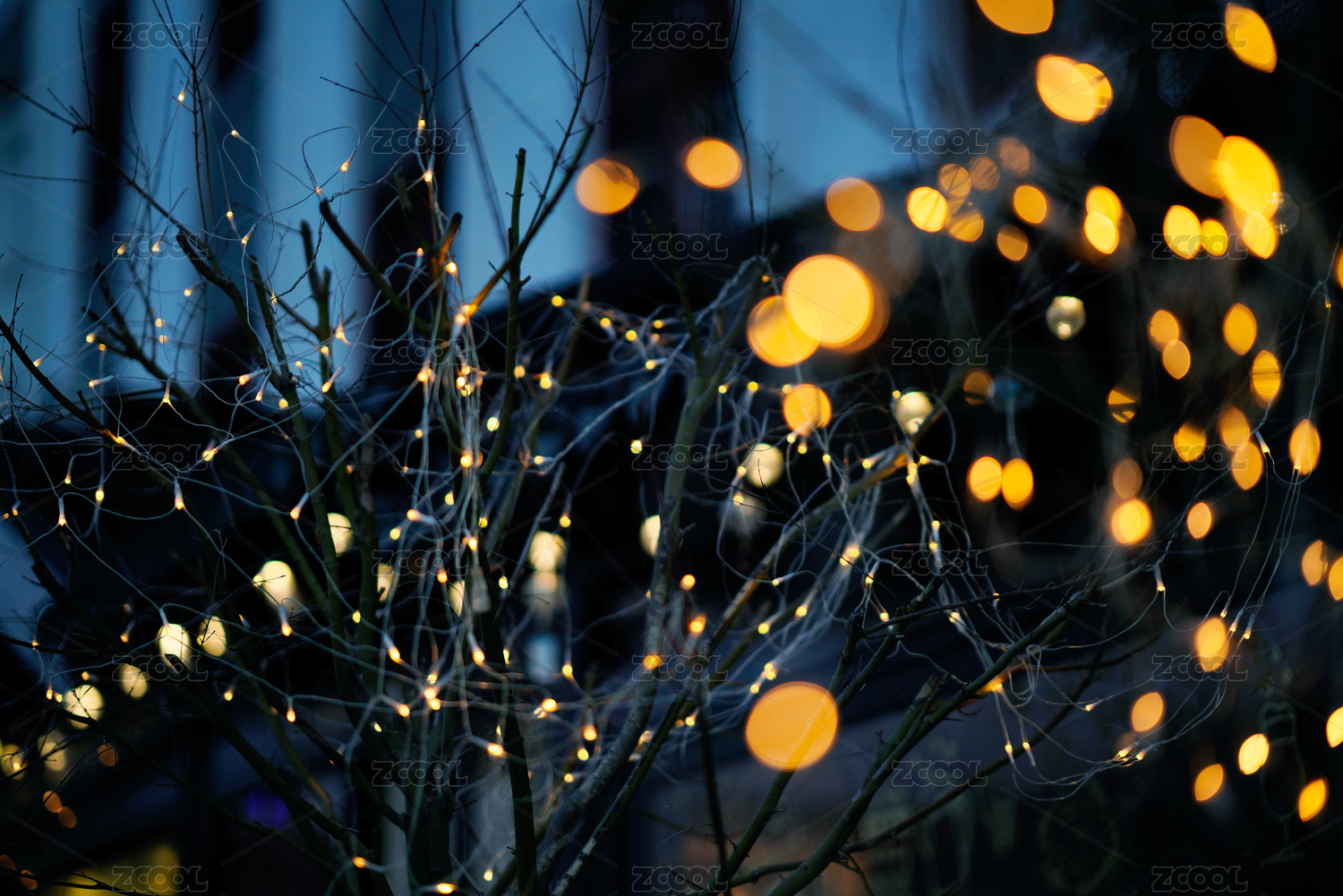 开放式园林中悬挂在半空中漂亮的氛围小彩灯