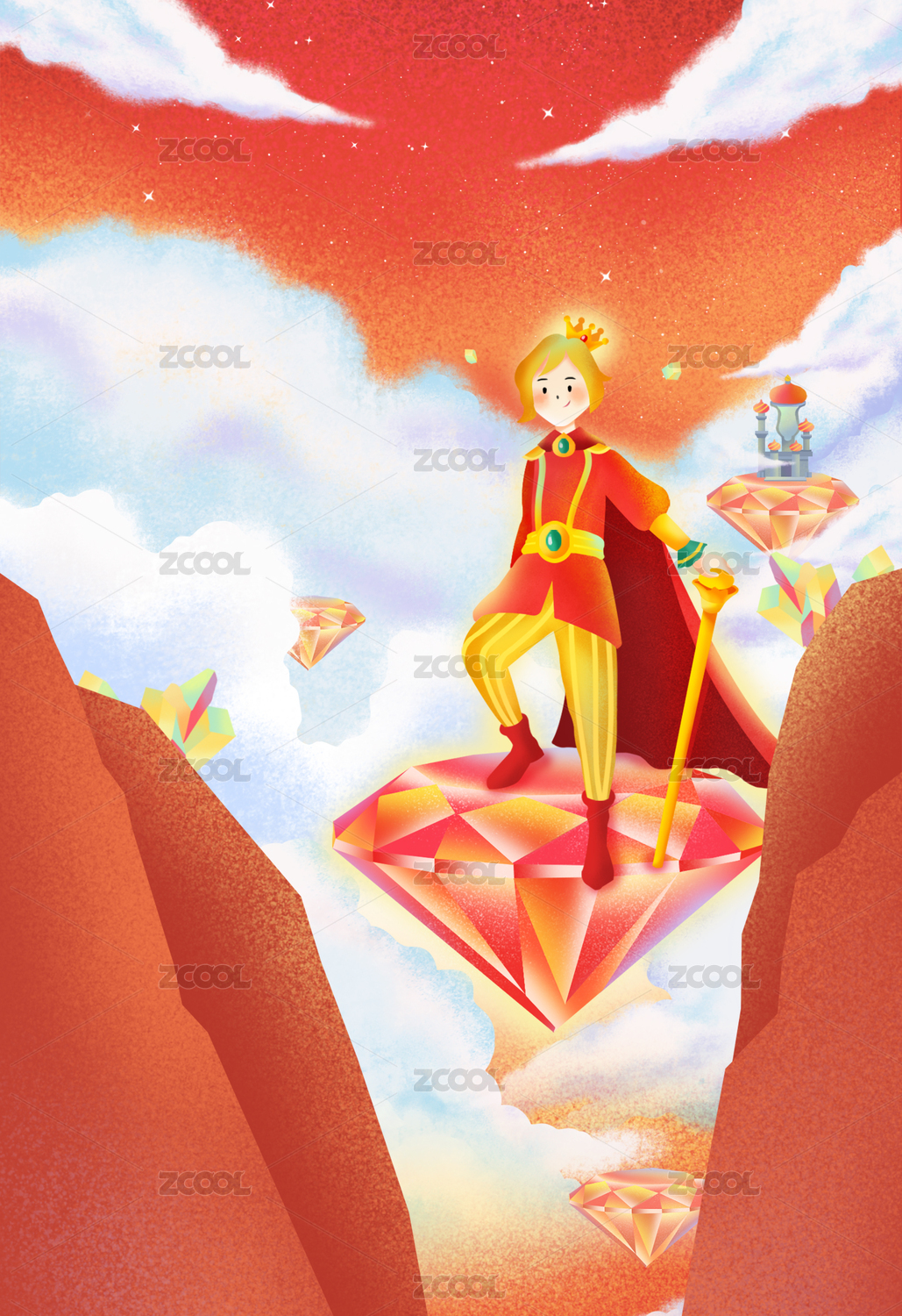 站在绯红钻石上的年轻国王