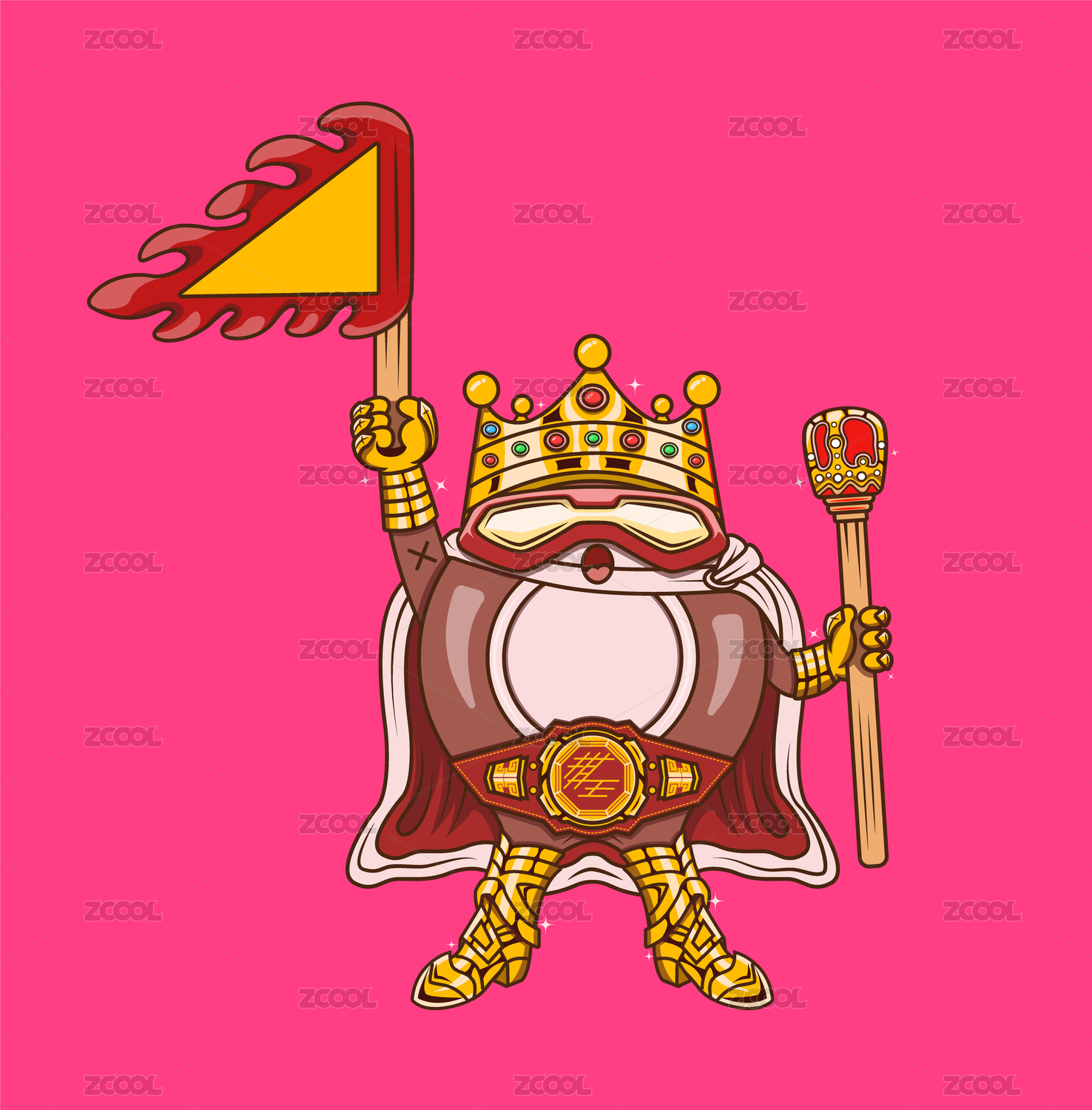 红袍皇冠国王站立插画