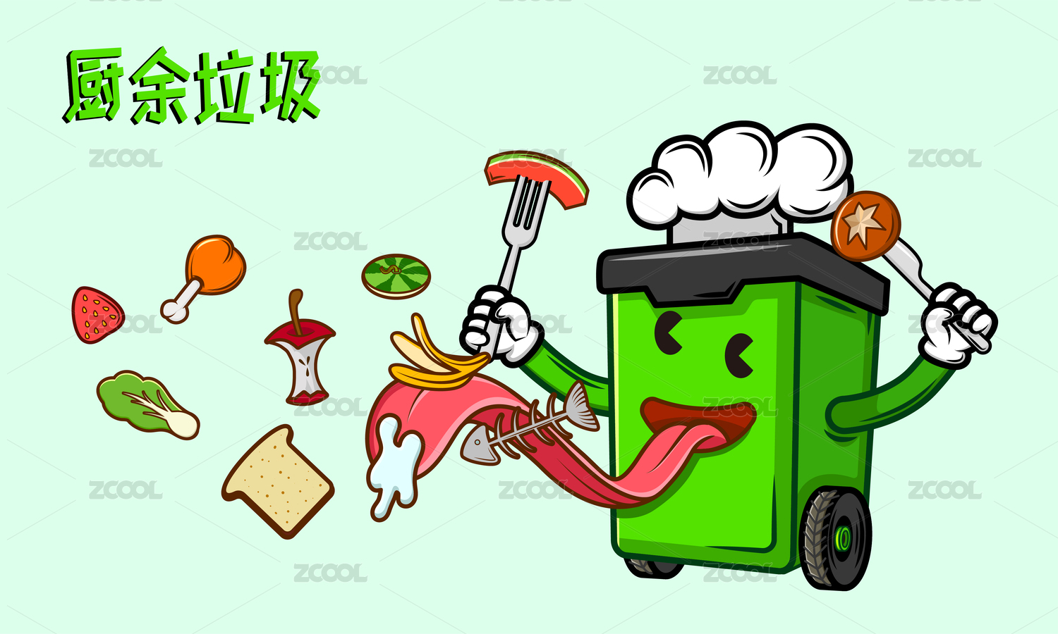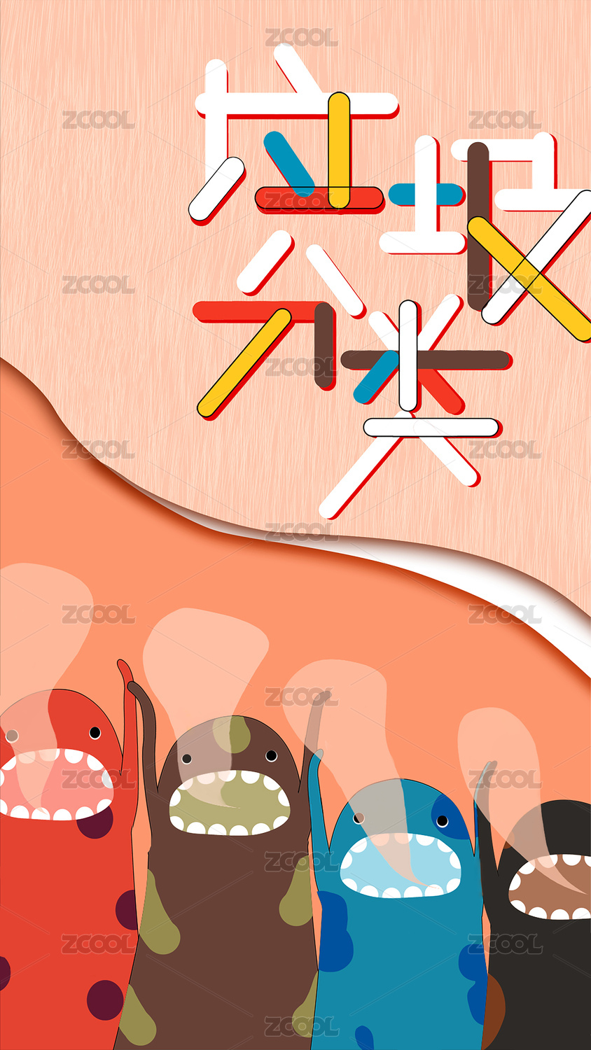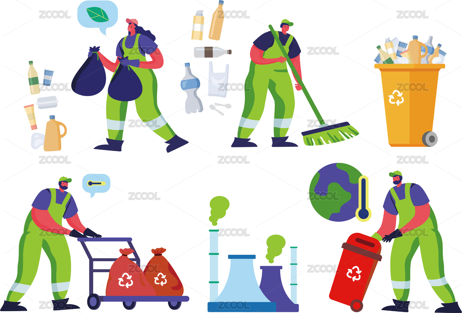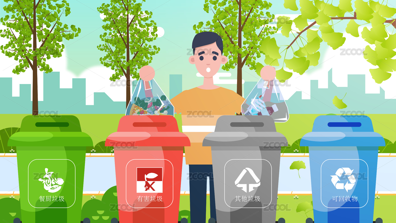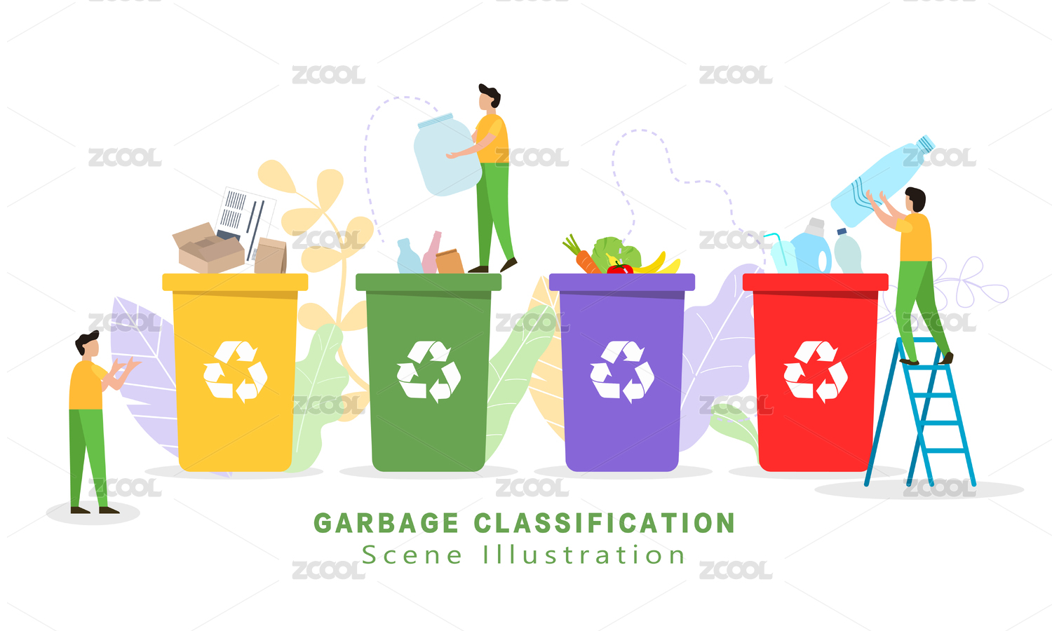 扁平风垃圾分类插画