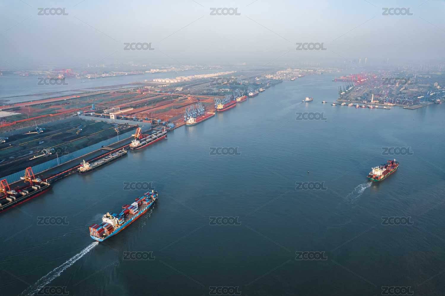 天津滨海新区入海口港口风光航拍