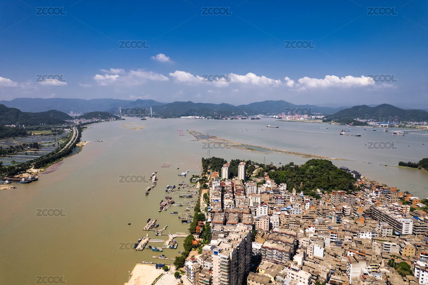 福建厦门九龙江入海口全景图